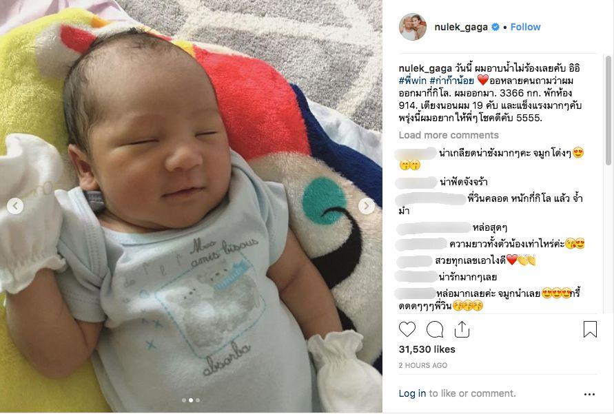 โดย หนูเล็ก โพสต์ภาพน้องวินในอิริยาบถน่ารักๆ และเขียนข้อความไว้ว่า “วันนี้ ผมอาบน้ำไม่ร้องเลยคับ อิอิ #พี่win #ก่าก๊าน้อย ออหลายคนถามว่าผมออกมากี่กิโล. ผมออกมา. 3366 กก. พักห้อง 914. เตียงนอนผม 19 คับ และแข็งแรงมากๆ คับ พรุ่งนี้ผมอยากให้พี่ๆ โชคดีคับ 5555.”