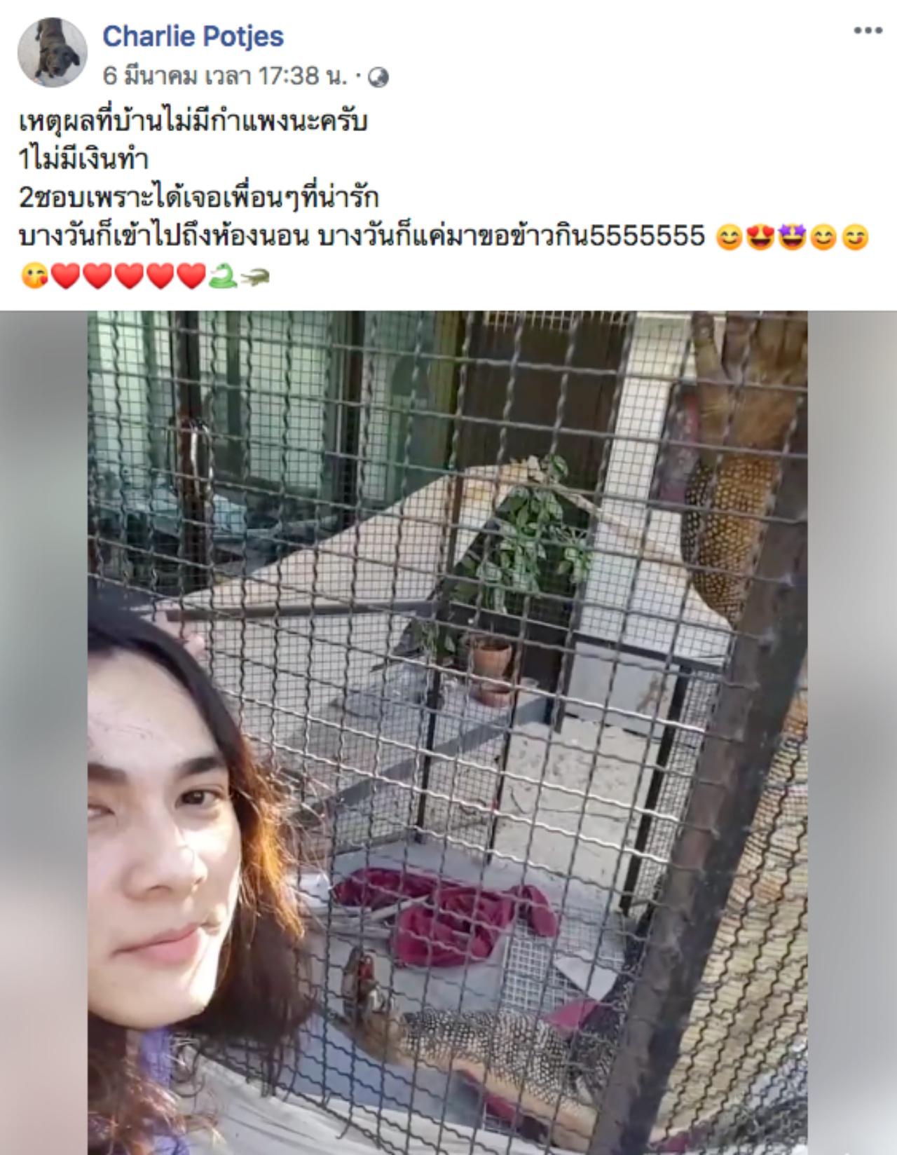 ล่าสุดหนุ่มแน็กได้โพสต์คลิปวิดีโอ ที่ตนเองได้เจอเพื่อนใหม่ในกรงหมาที่บ้าน ซึ่งก็คือตัวเงินตัวทอง ตัวโตเกือบเท่าจระเข้ พร้อมกับเขียนแคปชั่น ถึงเหตุผลที่เพื่อนๆ มักจะวนเวียนเข้ามานอนเล่นในบ้านว่า "เหตุผลที่บ้านไม่มีกำแพงนะครับ 1.ไม่มีเงินทำ 2.ชอบเพราะได้เจอเพื่อนๆ ที่น่ารัก บางวันก็เข้าไปถึงห้องนอน บางวันก็แค่มาขอข้าวกิน5555555"