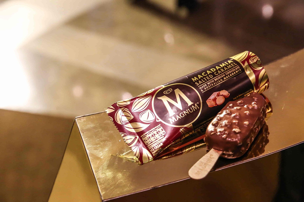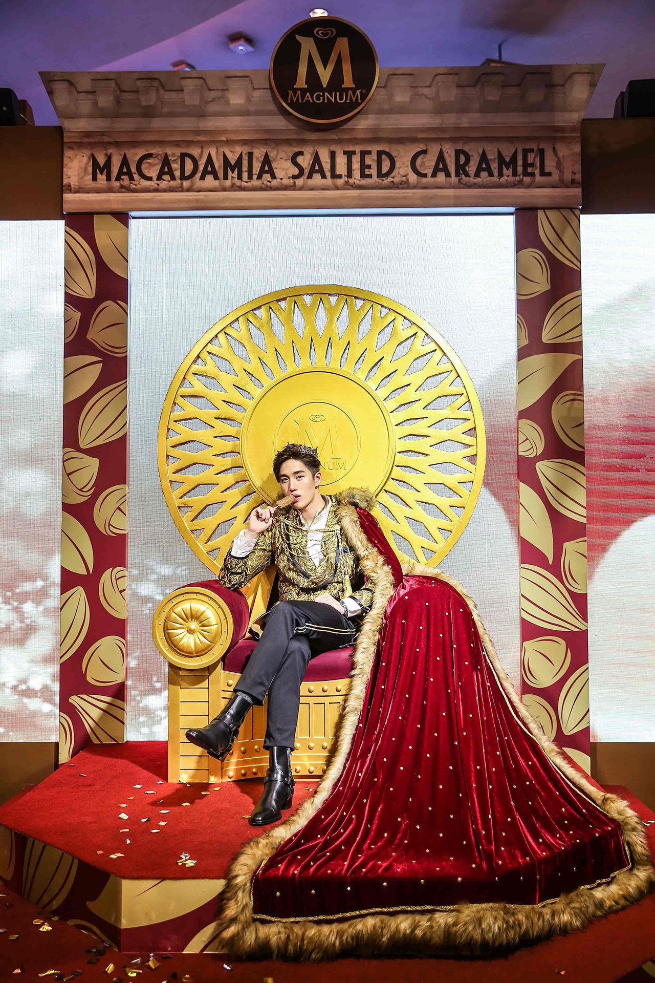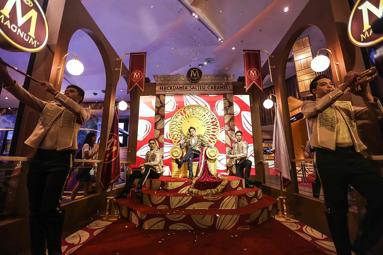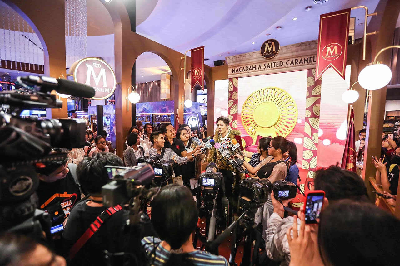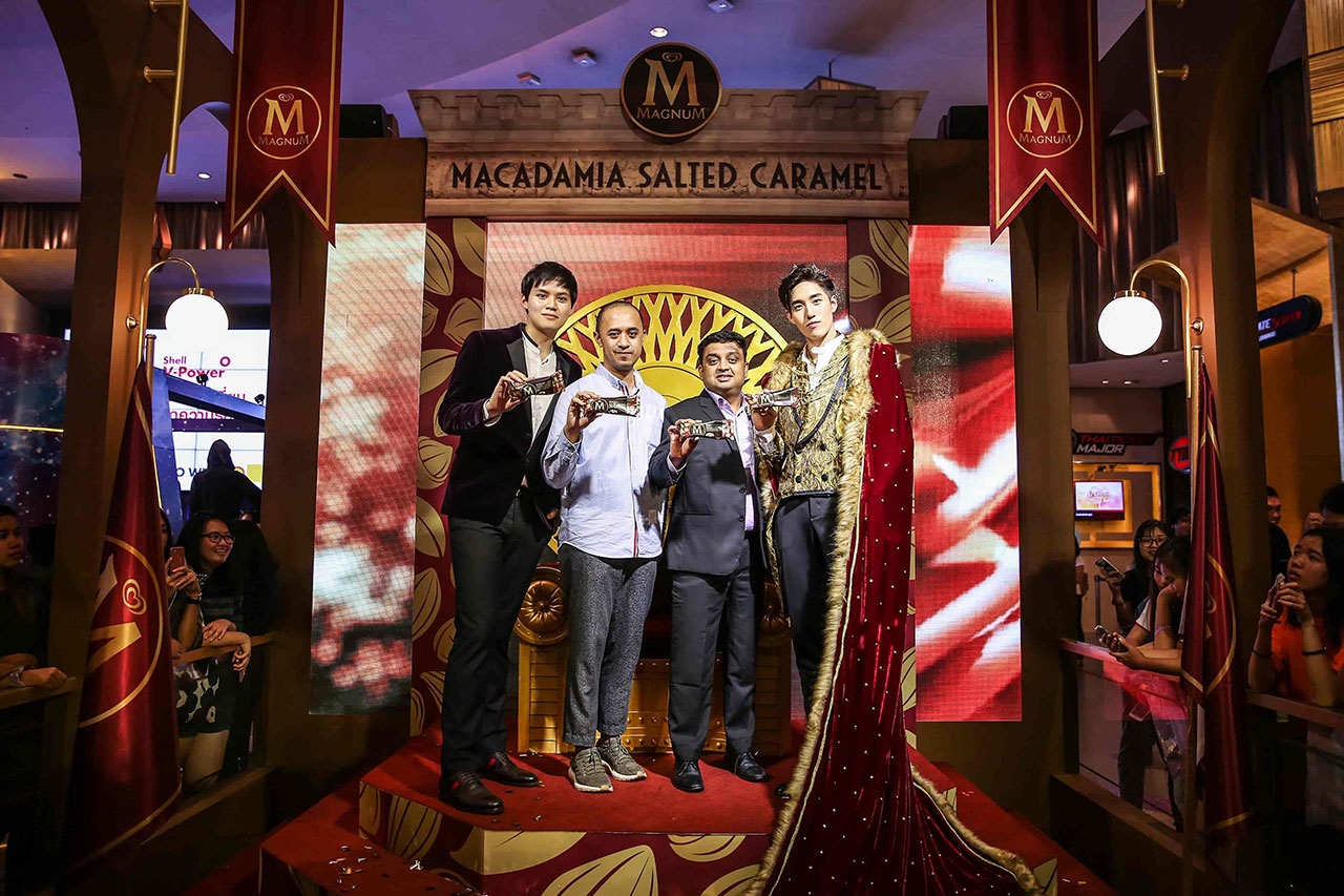 นับว่าเป็นการสร้างประวัติศาสตร์ครั้งแรกของ “แม็กนั่ม” ในรอบ 5 ปี ที่ได้เปิดตัวแบรนด์แอมบาสเดอร์ คนใหม่ “ต่อ ธนภพ ลีรัตนขจร” หนุ่มหล่อมากความสามารถ เพราะต้องการสร้างความตื่นเต้นและความแตกต่าง เป็นตัวแทนของแม็กนั่มที่แสดงถึงความสนุกสนาน แปลกใหม่ สะท้อนความเป็นวัยรุ่นที่มีไลฟ์สไตล์ที่โดดเด่น ฉีกออกจากความรู้สึกเดิมที่มองว่าแม็กนั่มเป็นรสชาติพรีเมียมเฉพาะของผู้ใหญ่ เพื่อเป็นการเปิดประสบการณ์ใหม่ให้กับผู้บริโภค และแม็กนั่มเลิฟเวอร์ จึงเปิดตัวพร้อมรสชาติใหม่ Macadamia Salted Caramel (แม็กนั่ม แมคคาเดเมีย ซอลท์เท็ด คาราเมล) ที่ผลิตจากวัตถุดิบชั้นเลิศ นำเข้าจากประเทศต้นกำเนิดอย่าง ช็อกโกแลตซิกเนเจอร์จากเบลเยียม ผ่านกรรมวิธีผลิตจากแหล่งผลิตที่ดีที่สุด ผสานกับความหอมหวานตัดเค็มจากเนื้อไอศกรีมซอลท์เท็ด คาราเมล เข้มข้น และไฮไลต์ของแม็กนั่มรสชาติใหม่นี้คือ แมคคาเดเมียจากออสเตรเลีย ถั่วที่มีราคาแพงที่สุดในโลก ได้รับการขนานนามว่าเป็นราชาแห่งถั่ว ด้วยความหอมหวานมัน กรุบกรอบ ทั้งยังเป็นแหล่งโปรตีนที่อุดมด้วยไขมันดีต่อสุขภาพ หลอมรวมเป็นรสชาติความอร่อยล้ำในคำเดียว จึงเป็นที่มาของความฟินเหนือระดับ ไม่ว่าจะกัดคำไหนก็ฟินดั่งราชา ราวกับนั่งอยู่บนบัลลังก์ และเพื่อเป็นการฉลองแบรนด์แอมบาสเดอร์คนใหม่ และรสชาติใหม่ ให้กับผู้บริโภคได้เปิดประสบการณ์ร่วมความฟินดั่งราชา จึงเปิดบัลลังก์แม็กนั่ม ที่เนรมิตพื้นที่บริเวณ พารากอน ซีนีเพล็กซ์ ให้เป็นท้องพระโรงจำลองเสมือนในเทพนิยาย ประดับตกแต่งด้วยวัสดุสีทองหรูหรา และมีไฮไลต์กิมมิก อยู่ที่ “บัลลังก์” เหมือนกับในภาพยนตร์โฆษณาที่