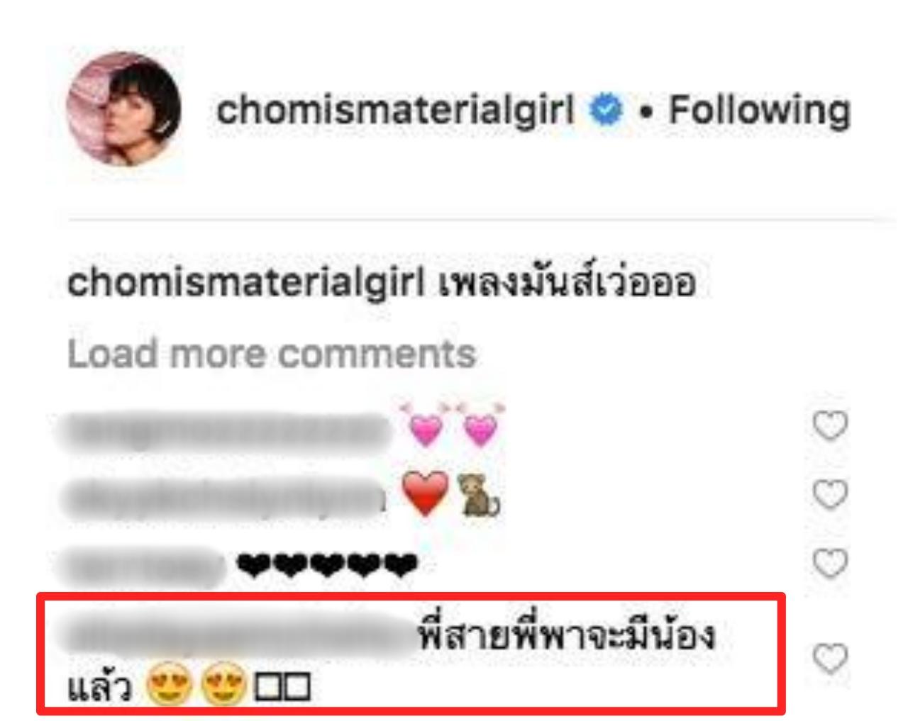 ซึ่งก็มีคนที่ติดตาม ชมพู่ เข้ามาคอมเมนต์เป็นเสียงเดียวกันว่า น้องก้มแบบนี้โบราณท่านว่า ก้มมองหาน้อง อีกไม่นานคงมีสมาชิกมาเพิ่มแน่นอนเลย และบ้างก็ว่า พี่สายฟ้ากำลังจะได้น้องสาวมาเพิ่มอีกคน