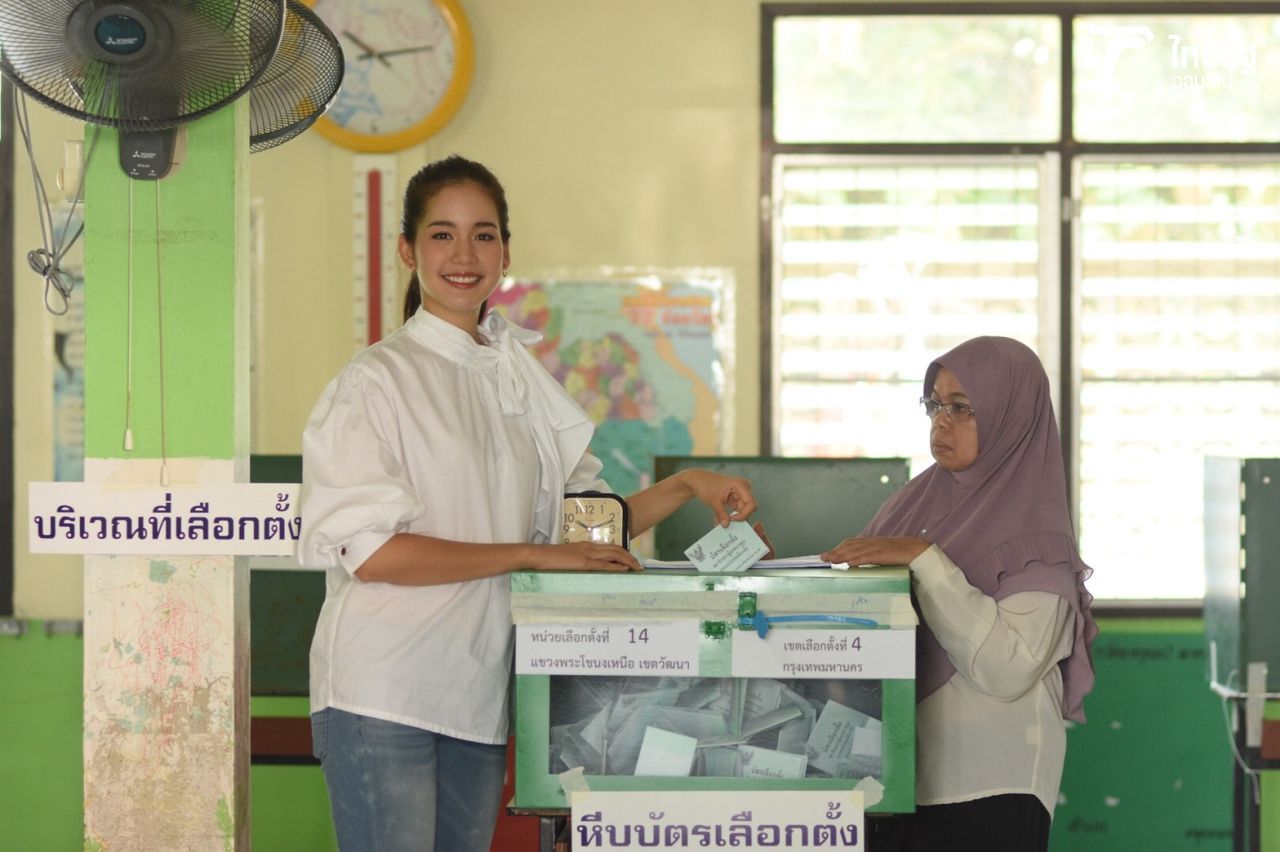 “วันนี้นะคะการเลือกตั้งในวันที่ 24 มีนาคมจนถึงเวลา 5 โมงเย็นก็อยากให้ทุกคนมาใช้สิทธิ์กันอย่านอนหลับทับสิทธิ์นะคะ เพราะเป็นสิ่งสำคัญอย่างหนึ่งในชีวิตเราเหมือนกันนะคะ เพราะว่าเป็นอนาคตของพวกเราค่ะ”