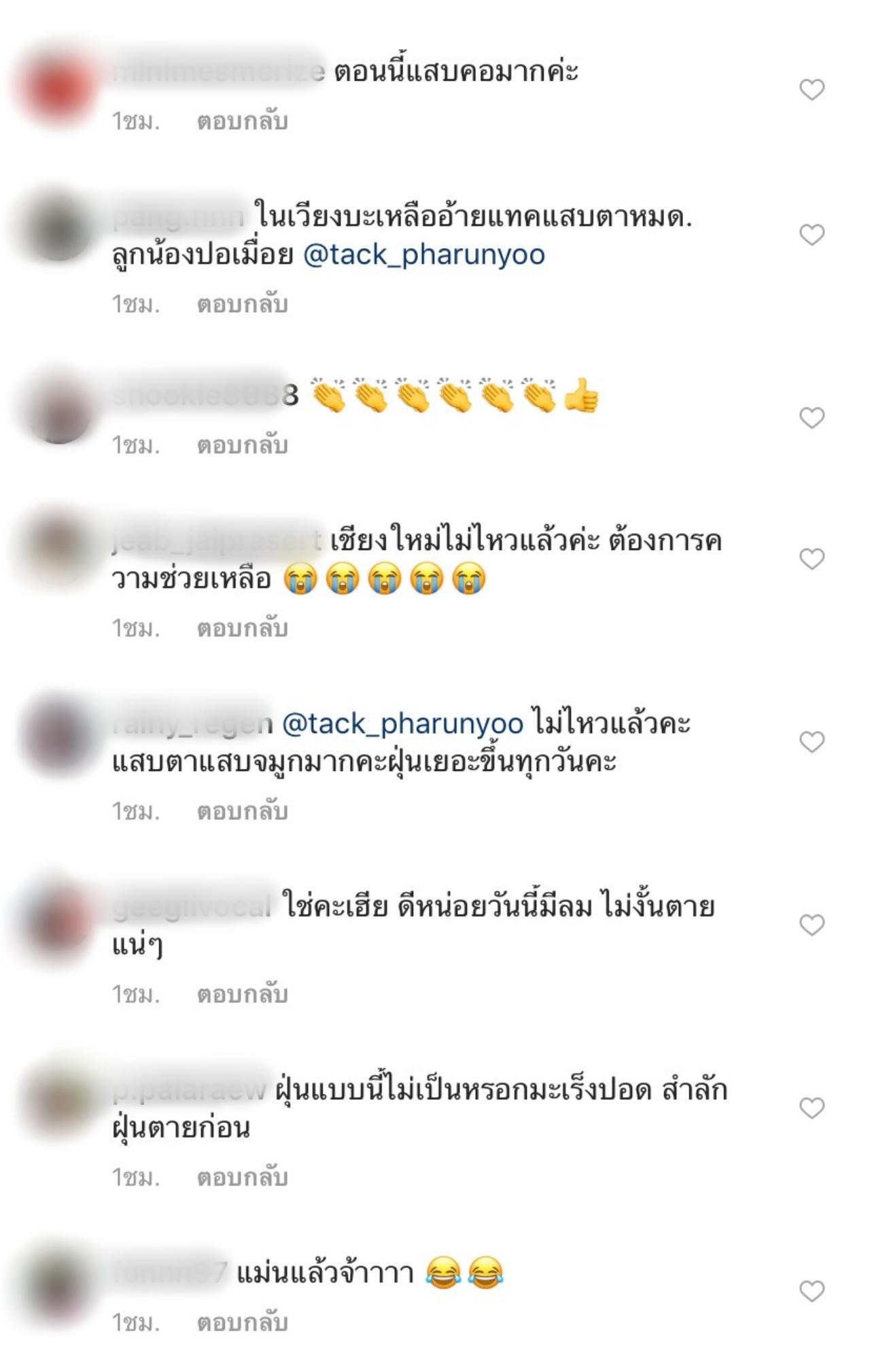 งานนี้หลังจากที่หนุ่มแทคประกาศหาผู้ว่าฯเชียงใหม่ ก็มีแฟนๆ เข้ามาคอมเมนต์เห็นด้วยกับหนุ่มแทคมากมาย พร้อมทั้งบอกว่าบางจังหวัดในภาคเหนือฝุ่นเยอะมากจนแสบคอแสบตาไปหมดแล้ว