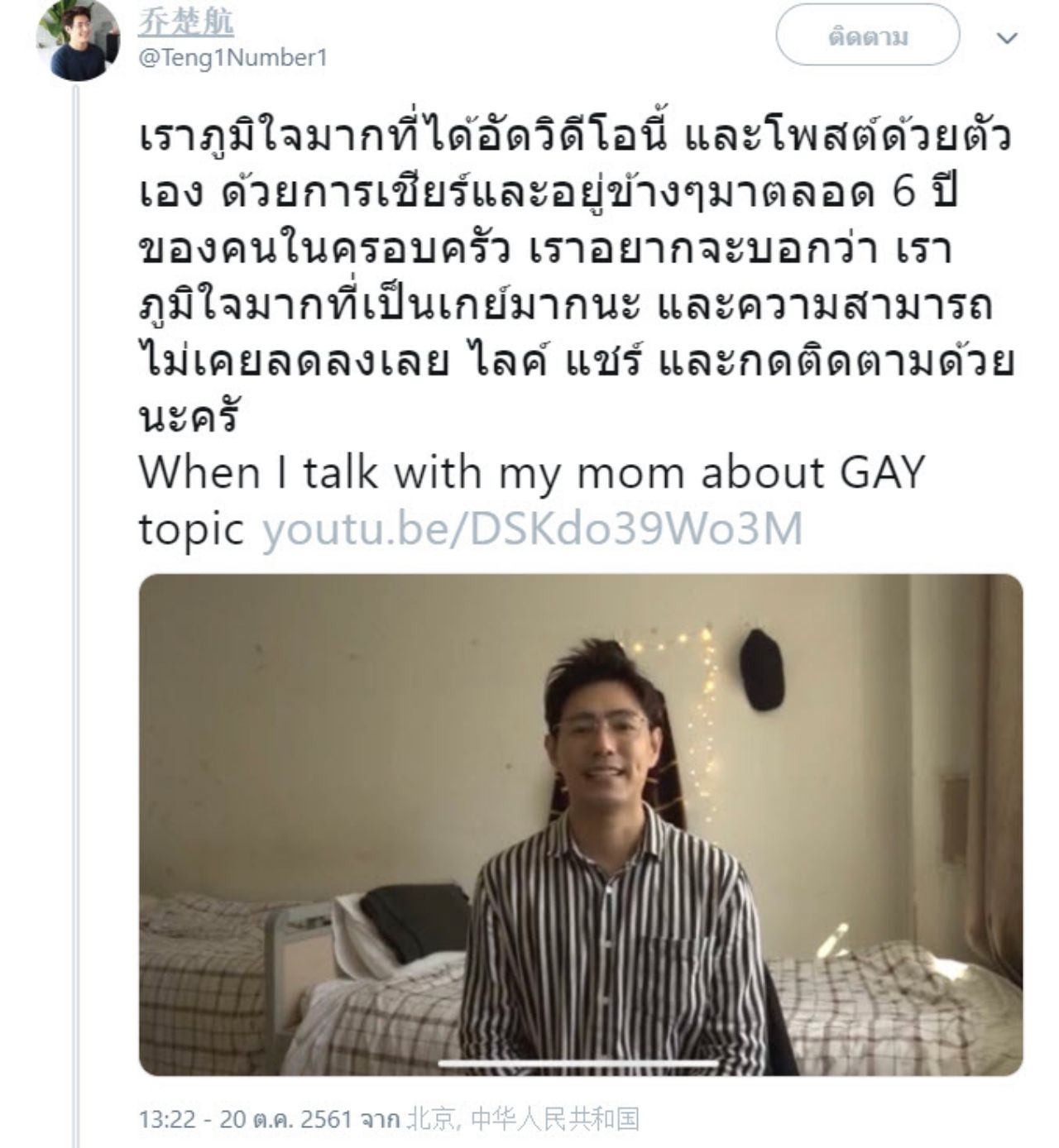 เคยสร้างความฮือฮามาแล้วเมื่อช่วงปลายปีที่ผ่านมา สำหรับอดีตนักร้องบอยแบนด์ B.O.Y และอดีตพระเอกอย่าง เต็งหนึ่ง คณิศ ปิยะปภากรกูล ที่อัดคลิปวิดีโอเปิดตัวว่าเป็นเป็นเกย์ และเล่าเรื่องราวตอนที่บอกเรื่องนี้กับคุณแม่ ซึ่งทำเอาหลายๆ คนถึงกับชื่นชมและประทับใจในความกล้าเปิดเผยตัวตนที่แท้จริงของเต็งหนึ่งมาก