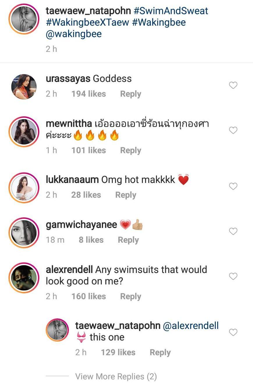 และเมื่อแฟนๆ ได้เห็นก็เข้ามาคอมเมนต์ชมว่าสวยแซ่บร้อนแรงมาก พร้อมทั้งอวยพรให้ธุรกิจชุดว่ายน้ำของเจ้าตัวขายดิบขายดีด้วย รวมไปถึงคนในวงการบันเทิงที่เข้ามาคอมเมนต์ความร้อนแรงของแฟชั่นเซตนี้กันหลายคน อาทิ ญาญ่า อุรัสยา, มิว นิษฐา, อุ้ม ลักขณา, แก้ม เดอะสตาร์, อเล็กซ์ เรนเดลล์, ป๋อมแป๋ม เทยเที่ยวไทย, นัท มีเรีย, โบว์ เบญจวรรณ, ไอซ์ อามีนา ฯลฯ
