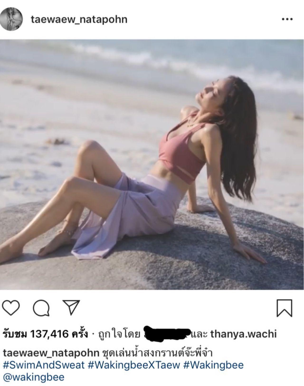 โดยนางเอกสาวได้ลงคลิปลงในอินสตาแกรมของตัวเอง ซึ่งกำลังนั่งโพสท่าบนโขดหินกับชุดเซ็กซี่เบาๆ ซึ่งในคลิปดังกล่าวทำเอาคนที่ได้ดูต้องหัวใจละลายน้ำลายหกกันแน่ๆ โดยสาวแต้วให้แคปชั่นกับคลิปเซ็กซี่เกินเบอร์ของเธอว่า “ชุดเล่นน้ำสงกรานต์จ๊ะพี่จ๋า”