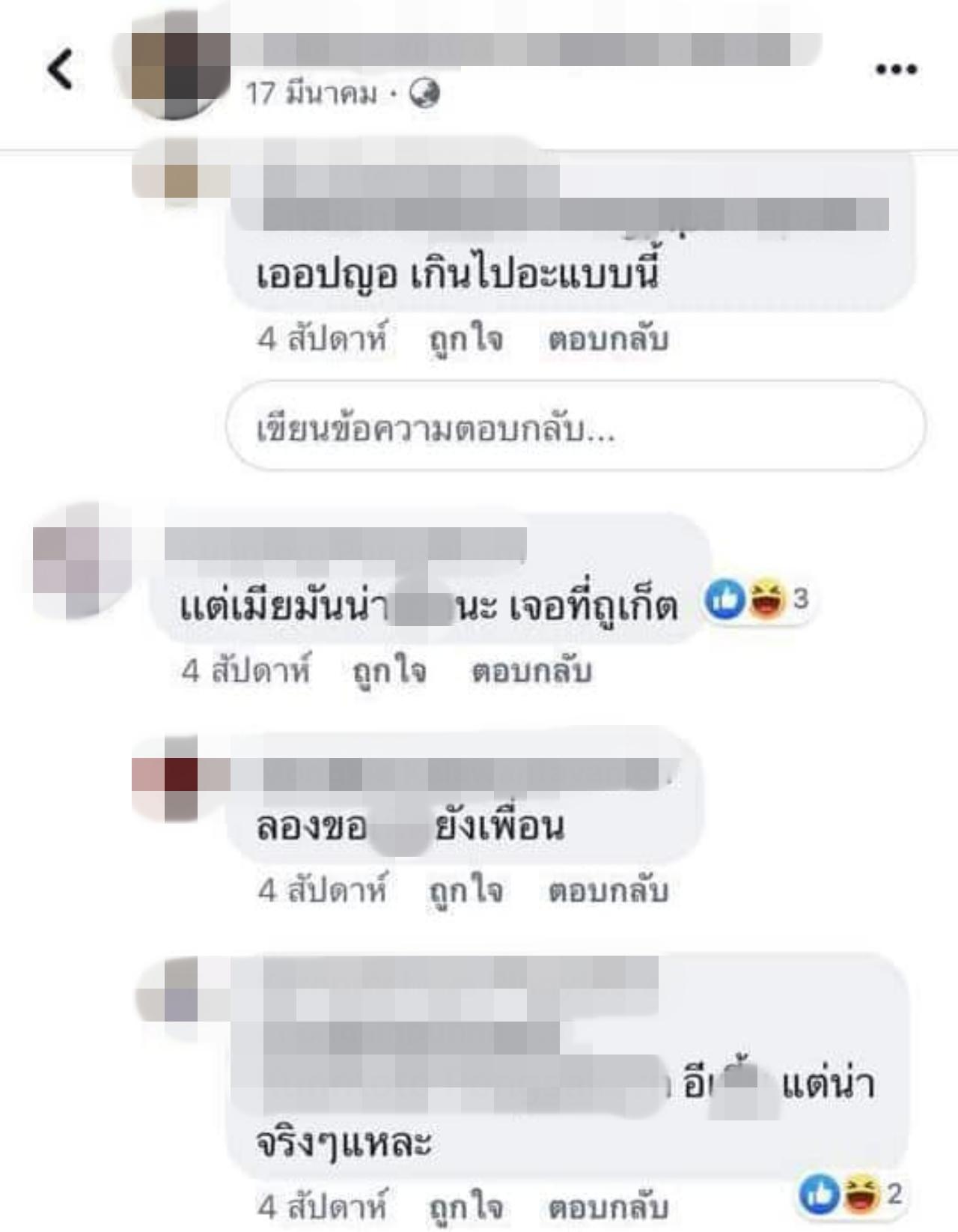นอกจากนี้ยังมีชาวเน็ตที่แคปข้อความที่เจ้าของโพสต์ได้เคยโพสต์ด่าวงนี้ไว้เมื่อ 1 เดือนก่อนหน้า ก่อนที่จะลบออก และในคอมเมนต์ใต้โพสต์นั้น เพื่อนๆ ต่างมาคอมเมนต์กันยกใหญ่ โดยเข้าข้างเจ้าของโพสต์ อีกทั้งยังมีการเหยียด เฟิต และแสดงความคิดเห็นคุกคามทางเพศต่อ ฟ้า ษริกา แฟนสาวของ เฟิต อีกด้วย