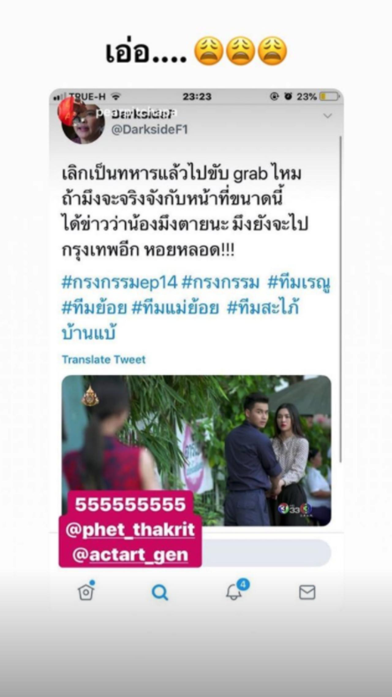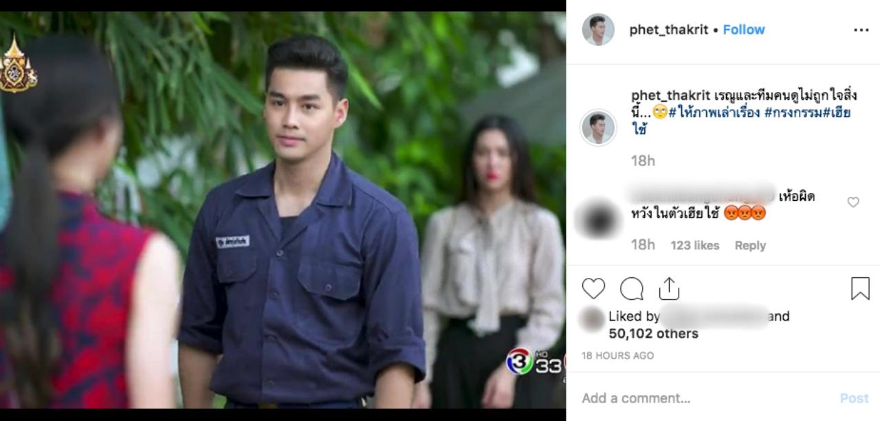 เรียกได้ว่าหนุ่มเพ็ชรที่รับบท อาใช้ งานเข้าไปตามๆ กัน เพราะแฟนๆ อินจัดจนเข้าไปถล่มด่าในไอจีจนถูกบล็อกเองชั่วคราว ซึ่งเจ้าตัวหนุ่มได้ลงไอจีสตอรี่พร้อมแคปชั่นว่า “โดนด่าคอมเมนต์ขนาดนี้ ทำเอารวนเลยจ้า ไอจีเตือนเลย!!”