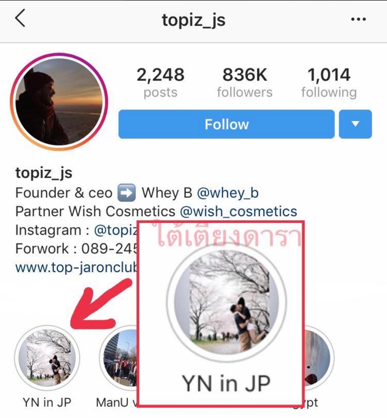 แค่นั้นยังไม่พอ รูปภาพปกไอจีสตอรี่ที่เป็นไฮไลต์ อัมบั้ม ‘YN in JP’ ของหนุ่มท็อป เป็นภาพที่ฝ่ายชายกำลังอุ้มฝ่ายหญิงขึ้น ซึ่งในภาพคล้ายกำลังจูบกันอีกด้วย และชุดของฝ่ายหญิงนั้นตรงกับชุดของสาวหยดน้ำเต็มๆ