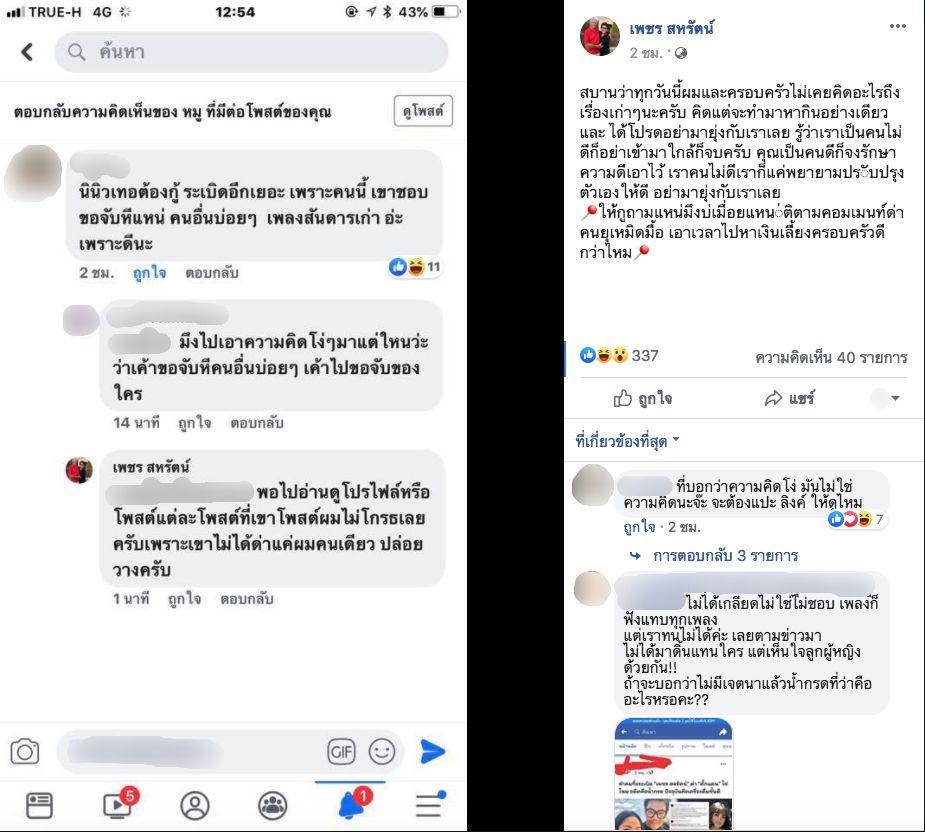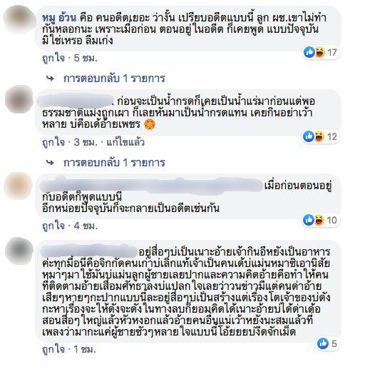จนทำให้เจ้าตัวโพสต์ภาพแคปข้อความของชาวเน็ตคนหนึ่งที่เข้ามาวิจารณ์เจ้าตัวและเขียนข้อความว่า “สาบานว่าทุกวันนี้ผมและครอบครัวไม่เคยคิดอะไรถึงเรื่องเก่าๆ นะครับ คิดแต่จะทำมาหากินอย่างเดียว และได้โปรดอย่ามายุ่งกับเราเลย รู้ว่าเราเป็นคนไม่ดีก็อย่าเข้ามาใกล้ก็จบครับ คุณเป็นคนดีก็จงรักษาความดีเอาไว้ เราคนไม่ดีเราก็แค่พยายามปรับปรุงตัวเองให้ดี อย่ามายุ่งกับเราเลย ให้กูถามแหน่มึงบ่เมื่อยแหน่ติตามคอมเมนท์ด่าคนยุเหมิดมื้อ เอาเวลาไปหาเงินเลี้ยงครอบครัวดีกว่าไหม”