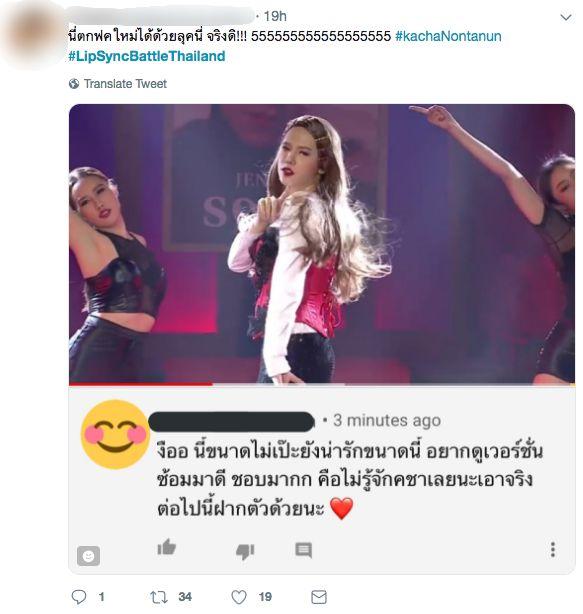 นอกจากนี้ยังมีแฟนๆ นำคลิปรายการไปโพสต์ในทวิตเตอร์และคอมเมนต์ชื่นชมในความแซ่บของเจ้าตัว แม้ท่าเต้นอาจจะยังไม่ค่อยเป๊ะ แต่หลายคนยกนิ้วให้จริตของคชา พูดเลยว่ายอมจริงๆ จ้า.