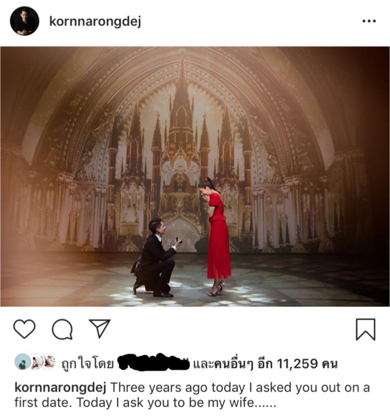 โดยกรณ์ได้โพสต์ภาพลงในอินสตาแกรมส่วนตัว โดยมีแคปชั่นว่า “วันนี้เมื่อ 3 ปีที่แล้วเป็นวันที่ชวนคุณออกเดทครั้งแรก วันนี้ก็จะขอให้คุณเป็นภรรยาของผม” ซึ่งหลังจากที่หนุ่มกรณ์ได้โพสต์ภาพดังกล่าวไป ก็มีคนในแวดวงบันเทิงและไฮโซเข้ามาแสดงความยินดีกับทั้งคู่กันอย่างล้นหลาม
