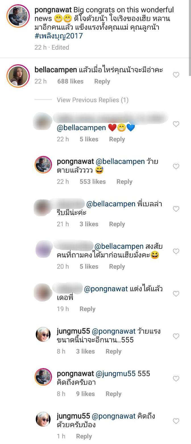 แต่งานนี้หนุ่มป้องกลับเจอคำถามสุดจี๊ดจากเบลล่าว่า “แล้วเมื่อไหร่คุณน้าจะมีอ่าคะ” ถูกอกถูกใจแฟนๆ จนกดไลค์กันใหญ่ ทำเอาหนุ่มป้องไปไม่เป็น ตอบกลับไปว่า “ว้ายตายแล้วววว” พร้อมทั้งใส่อีโมติคอนเหงื่อตก ก่อนจะโดนแฟนๆ รุมแซว แต่เบลล่าเองก็โดนแฟนๆ แซวเหมือนกันว่าเบลล่ารีบมีได้แล้ว สงสัยคนที่ถามคงได้มาก่อนหนุ่มป้องรึเปล่า นอกจากนี้ยังมีนักแสดง-ผู้จัดละครดัง ตู่ นพพล โกมารชุน เข้ามาแซวหนุ่มป้องว่า "ว้ายแรงขนาดนี้น่าจะอีกนาน..555" ด้วย