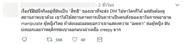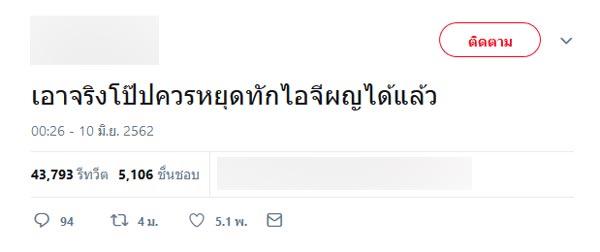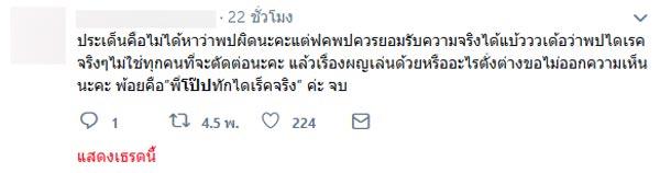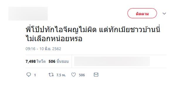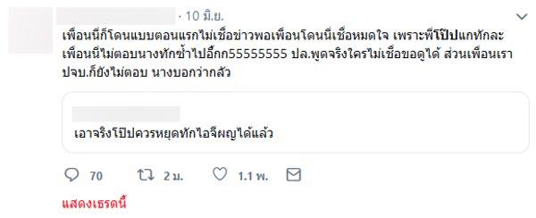 ยิ่งไปกว่านั้นยังมีการทวีตข้อความว่า “พี่โป๊ปทักไอจีไม่ผิด แต่ทักเมียชาวบ้านนี่ไม่เลือกหน่อยหรอ” อีกทั้งยังมีคนแฉว่าเพื่อนของตนก็ถูกหนุ่มโป๊ปทักเหมือนกัน แต่ไม่ได้ทักในไอจี แต่เป็นสถานบันเทิงแห่งหนึ่ง แต่ก็มีหลายคนที่ไม่เชื่อข่าวและบอกว่ายังรักและชื่นชอบหนุ่มโป๊ปเหมือนเดิม
