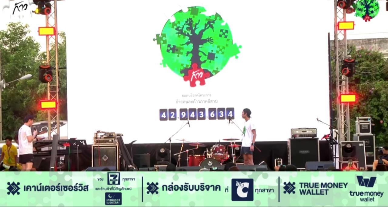 ขอบคุณทุกคนอีกครั้งสำหรับก้าวคนละก้าวครั้งแรกที่อีสาน เพื่อ 8 โรงพยาบาล ในวันนี้เราได้ยอดเงิน 42,943,634 ผ่านระบบออนไลน์ ส่วนเงินที่ประชาชนร่วมบริจาคมาตามเส้นทางจากจังหวัดหนองคายมาถึงจังหวัดขอนแก่น ระยะทาง 187 กม.นั้นยังไม่ได้นับรวม เงินจำนวนนี้จะถูกส่งไปยัง 8 โรงพยาบาลในภาคอีสาน".