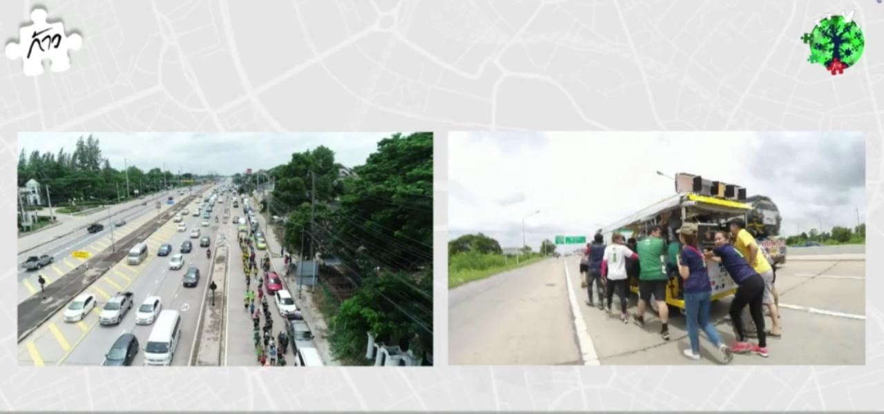 และมี โน้ต อุดม มาร่วมสร้างสีสันบรรยายระหว่างที่ทุกคนวิ่ง ผ่านทางไลฟ์สดเฟซบุ๊ก ก้าว ตลอดระยะทางในการวิ่ง แม้ในวันนี้จะมีเหตุติดขัด รถไลฟ์สดแบตหมด แต่ทุกคนก็ไม่หยุด ต่างสู้ร่วมกันเข็น จนกระทั่งได้ยกขึ้นรถหกล้อ และเริ่มไลฟ์สดกันต่อให้แฟนๆ ทางบ้านได้ติดตามตลอดทั้งวัน