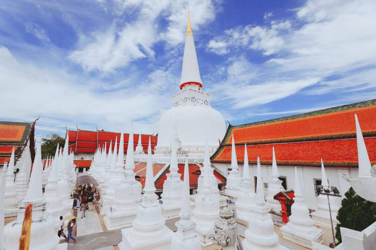 เริ่มต้นทริปวันแรกด้วยการไหว้พระทำบุญสวดมนต์ที่ “วัดพระมหาธาตุวรมหาวิหาร” หรือที่ชาวนครศรีธรรมราชเรียกว่า “วัดพระธาตุ” เป็นโบราณสถานศักดิ์สิทธิ์ เปรียบเสมือนศูนย์รวมจิตใจของพุทธศาสนิกชน เป็นสัญลักษณ์ของจังหวัดที่รู้จักกันอย่างแพร่หลาย คือ พระบรมธาตุเจดีย์ ซึ่งนิยมเรียกกันสั้นๆ ว่า “พระธาตุนคร” หรือ “พระบรมธาตุเมืองนคร” ซึ่งตั้งอยู่ภายในวัดพระมหาธาตุวรมหาวิหาร สถานที่บรรจุพระบรมสารีริกธาตุของพระสัมมาสัมพุทธเจ้า จุดเด่นของพระบรมธาตุเจดีย์แห่งนี้เป็นแบบทรงระฆังคว่ำ มียอดเจดีย์เป็นทองคำแท้