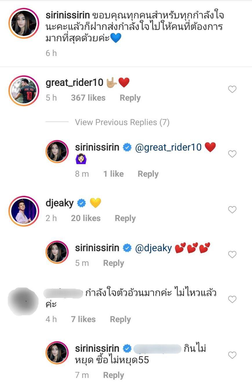 ล่าสุด ชิปปี้ได้โพสต์ภาพตัวเองยิ้มสดใสและเขียนข้อความสั้นๆ ว่า “ขอบคุณทุกคนสำหรับทุกกำลังใจนะคะ แล้วก็ฝากส่งกำลังใจไปให้คนที่ต้องการมากที่สุดด้วยค่ะ” โดยมีแฟนๆ เข้ามาคอมเมนต์ให้กำลังใจเป็นจำนวนมาก รวมไปถึงคนในวงการบันเทิง อาทิ เกรท วรินทร, ดีเจเอกกี้ เอกชัย, อ้วน รังสิต, วุธ อัษฎาวุธ, แพร์ พิชชาภา, เพื่อน คณิณ, แยม มทิรา ฯลฯ