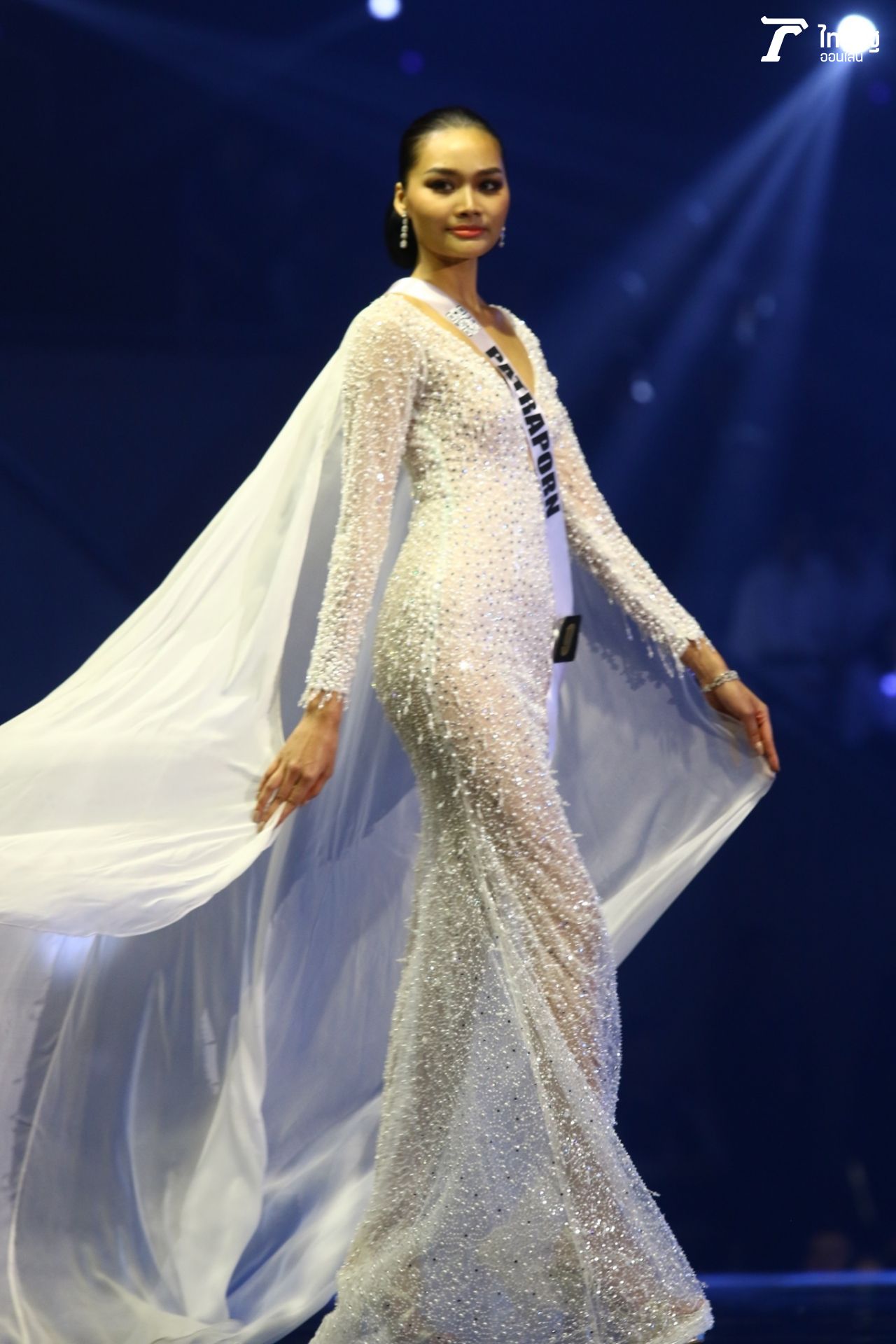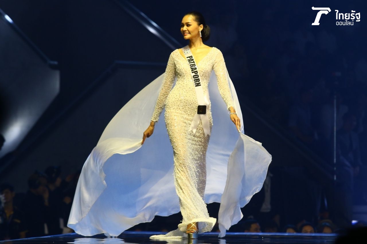 ส่วนรอบชุดราตรี ต้องยกให้ เฟิร์ส ภัทราพร หวัง ชุดขาวพราวเสน่ห์สุดพริ้วอย่างแรง ผสมกับท่าเดินที่เก่งกาจ แต่งหน้าทำผมเป๊ะหมด จนคนดูปรบมือให้เกรียวกราว และแน่นอนกองเชียร์เยอะจริงกรี๊ดแยะต้องยกให้ ฟ้าใส ปวีณสุดา ดรูอิ้น