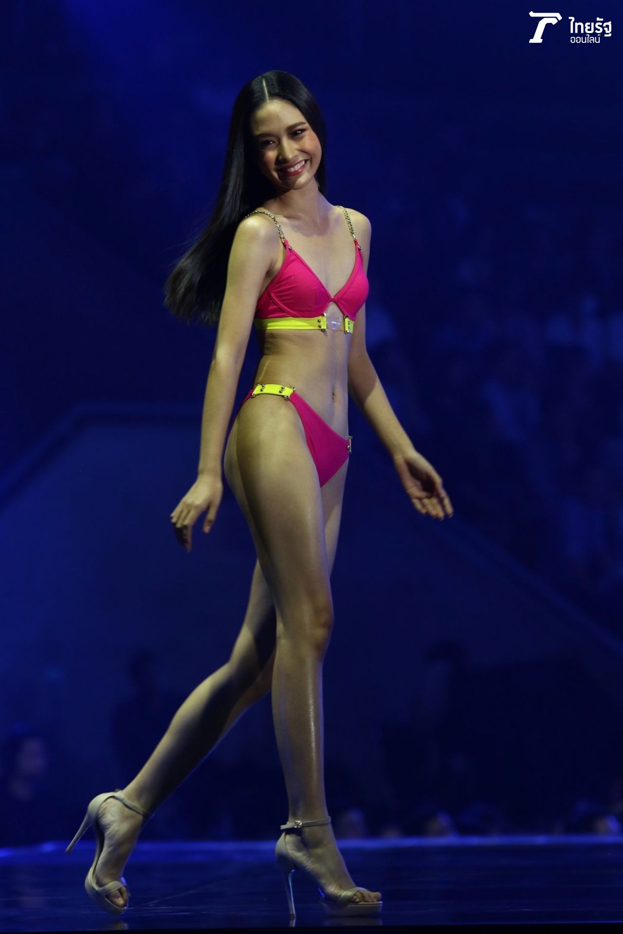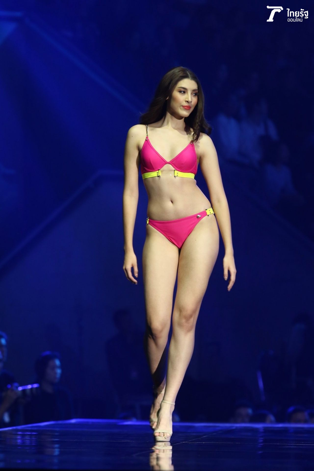 ใครหุ่นปังหรือหุ่นพัง ใครมีวินัยในการกินและดูแลเรือนร่างอย่างดี ดูกันชัดๆ ในรอบชุดว่ายน้ำของแบรนด์ดัง บีเอสซีสตรีมไลน์ BSC Streamline แสงสีเสียงสุดคึกคัก ปลุกเร้าอารมณ์เพริดแพร้ว ระเบิดเซ็กซี่อย่างแรงด้วยชุดว่ายน้ำหลากสีสดทิ่มตาแรง รอบชุดว่ายน้ำนางงามตั้งใจอวด เดินสับๆ เดินฟาดๆ กระชากใจจริงต้องยกให้สาวผิวสี เบลล่า ธนัชพร บุญแสง เจนจัดจริงบนเวที สมแล้วที่เคยเป็นนางแบบอินเตอร์มาก่อน หันมาดู คิมมี่ คิม โดเชคาโลวา ก็เจิดจ้าพอตัวอยู่