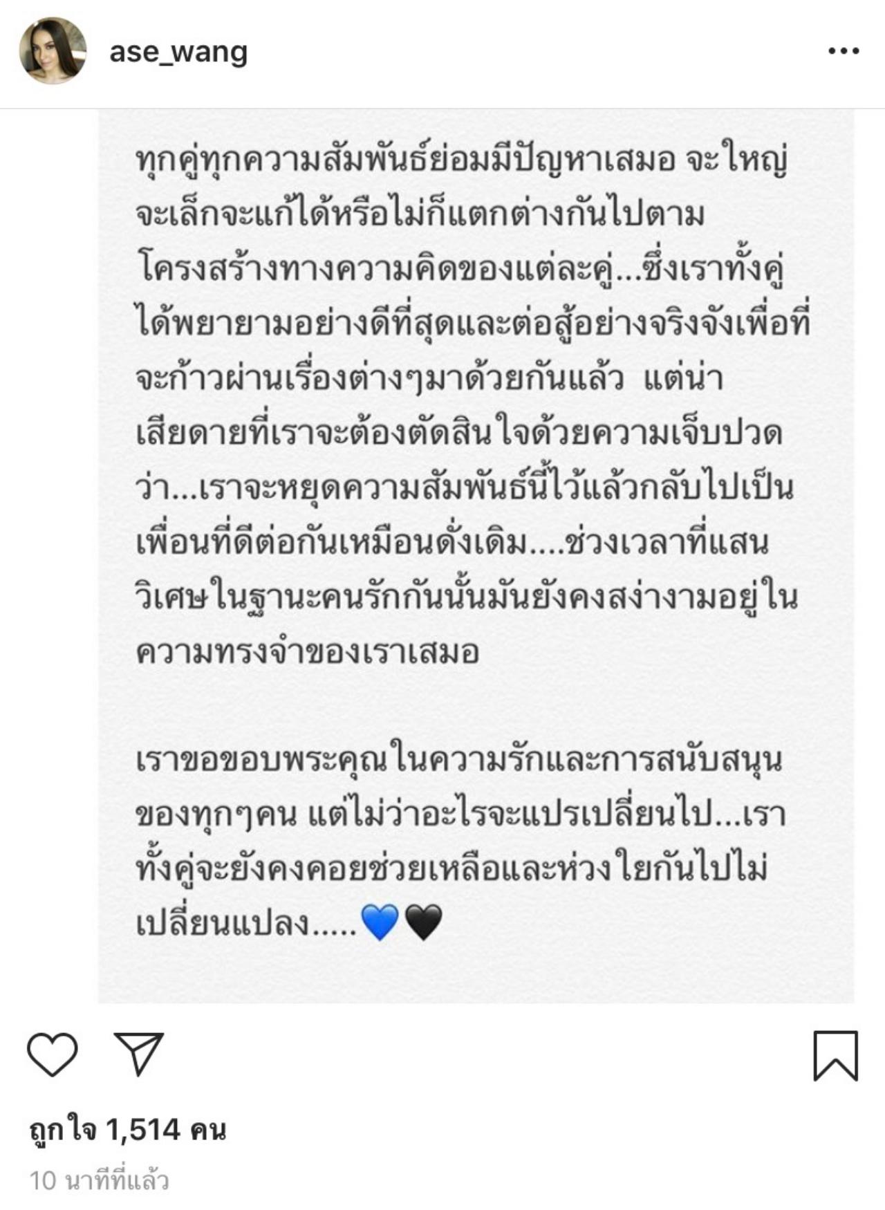 เราขอขอบพระคุณในความรักและการสนับสนุนของทุกๆ คน แต่ไม่ว่าอะไรจะแปรเปลี่ยนไป...เราทั้งคู่จะยังคงคอยช่วยเหลือและห่วงใยกันไปไม่เปลี่ยนแปลง.....”