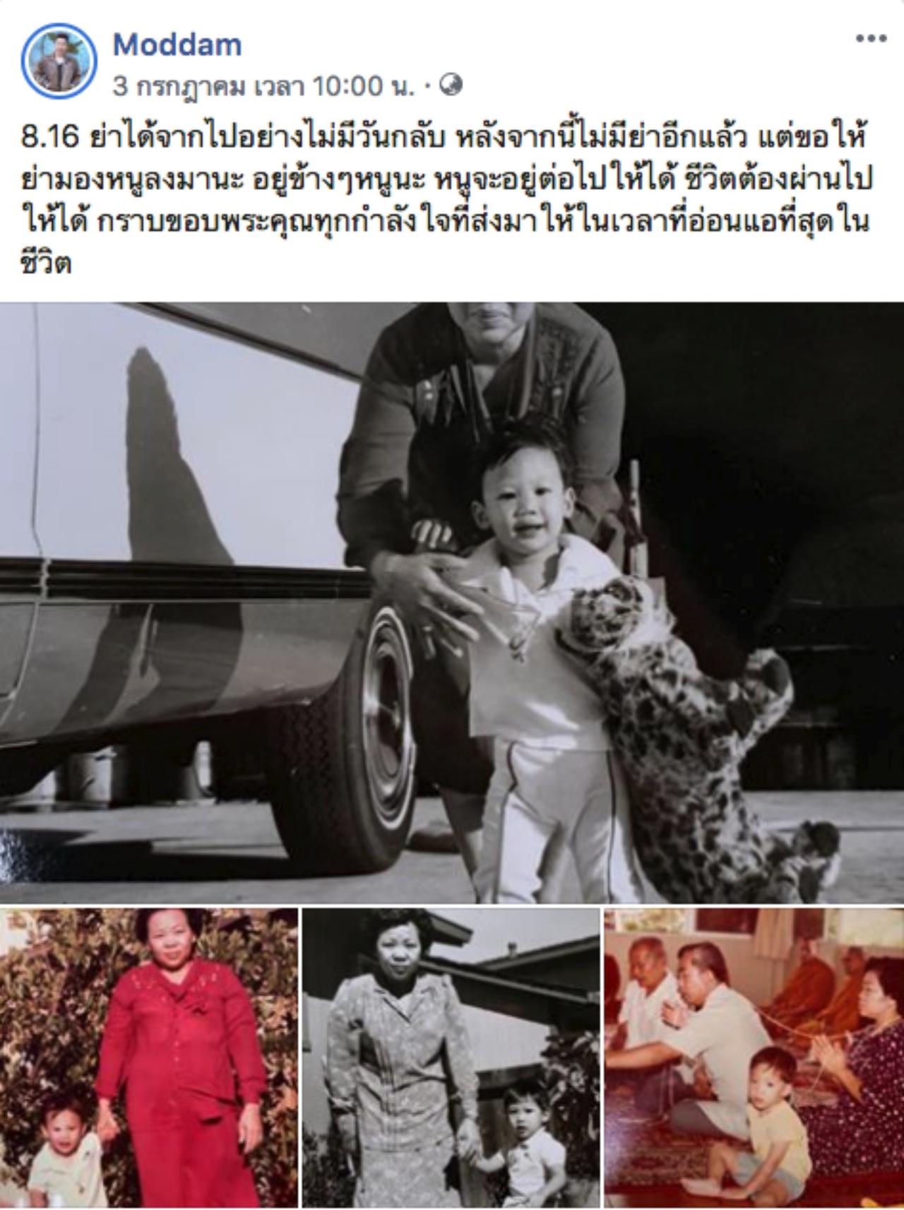 "08.16 ย่าได้จากไปอย่างไม่มีวันกลับ ย่าได้จากไปแล้ว หลังจากนี้ไม่มีย่าอีกแล้ว แต่ขอให้ย่ามองหนูลงมานะ อยู่ข้างๆหนูนะ หนูจะอยู่ต่อไปให้ได้ ชีวิตต้องผ่านไปให้ได้ กราบขอบพระคุณทุกกำลังใจที่ส่งมาให้ในเวลาที่อ่อนแอที่สุดในชีวิต ขอกราบขอบพระคุณจากใจคะ หลังจากวันนี้ขอให้ย่าได้พักผ่อนที่บ้านฉะเชิงเทรา ที่ อ.พนมสารคาม"