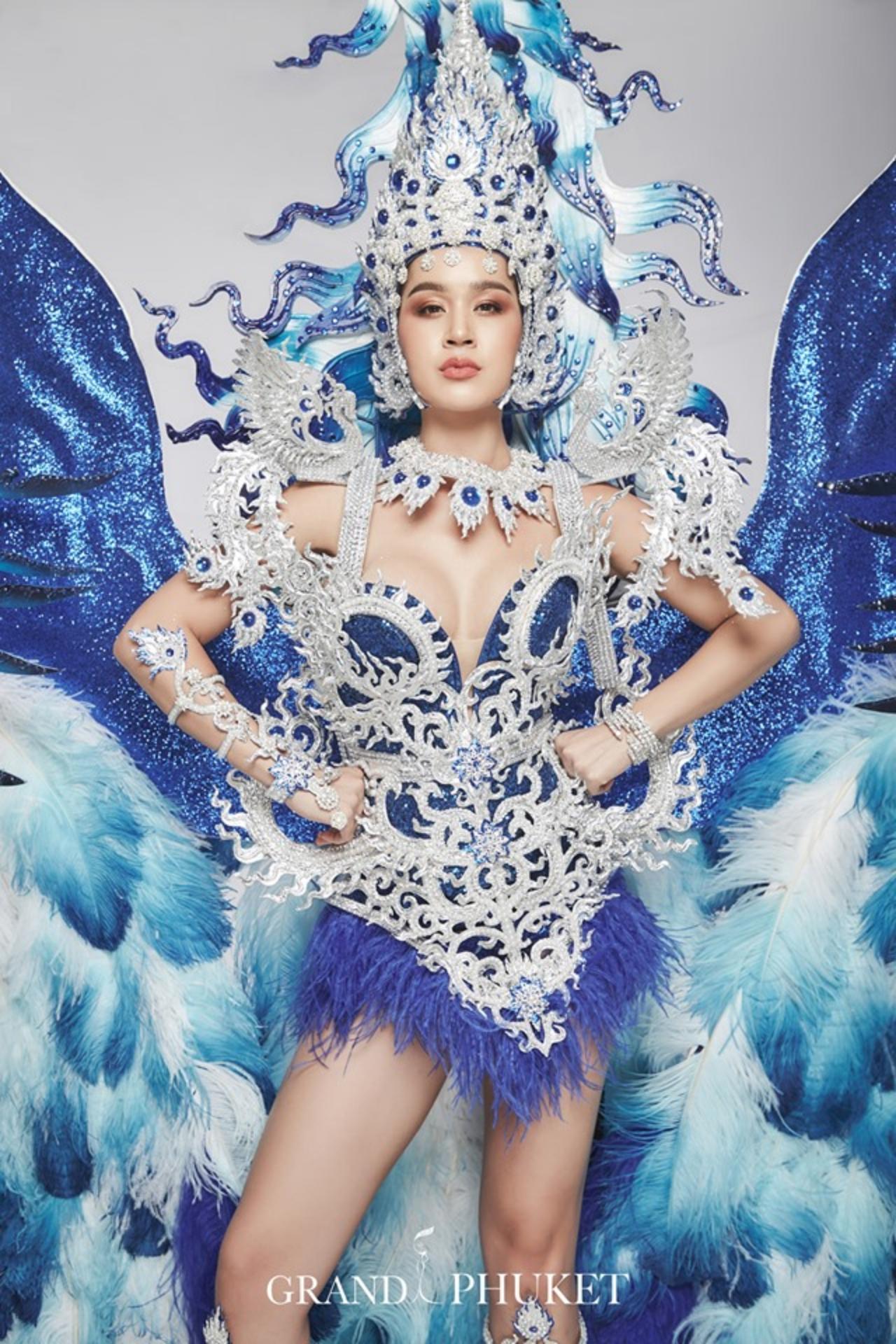 เป็นสัญลักษณ์ที่สื่อถึงสุภาพสตรี ที่มีความงดงามอันเป็นนิรันดร์ ชุดไทยประยุกต์สีฟ้าน้ำเงิน สีประจำภูเก็ต ประดับไข่มุกและเพชรตลอดทั้งตัว สื่อถึงความมั่งคั่งรุ่งเรือง และแหล่งอุตสาหกรรมผลิตไข่มุก อัญมณีเลอค่าจากท้องทะเลอันดามัน