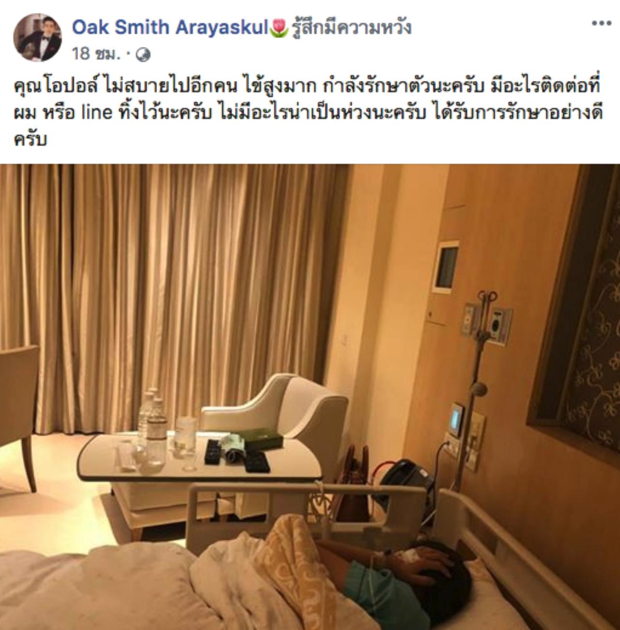 ก่อนที่จะโพสต์ถึงภรรยา โอปอล์ ที่เฝ้าไข้ลูกๆ แบบไม่ไปไหน จนทำให้ตนเองนั้นป่วยตามลูกๆ ไป "คุณโอปอล์ ไม่สบายไปอีกคน ไข้สูงมาก กำลังรักษาตัวนะครับ มีอะไรติดต่อที่ผม หรือ line ทิ้งไว้นะครับ ไม่มีอะไรน่าเป็นห่วงนะครับ ได้รับการรักษาอย่างดีครับ"