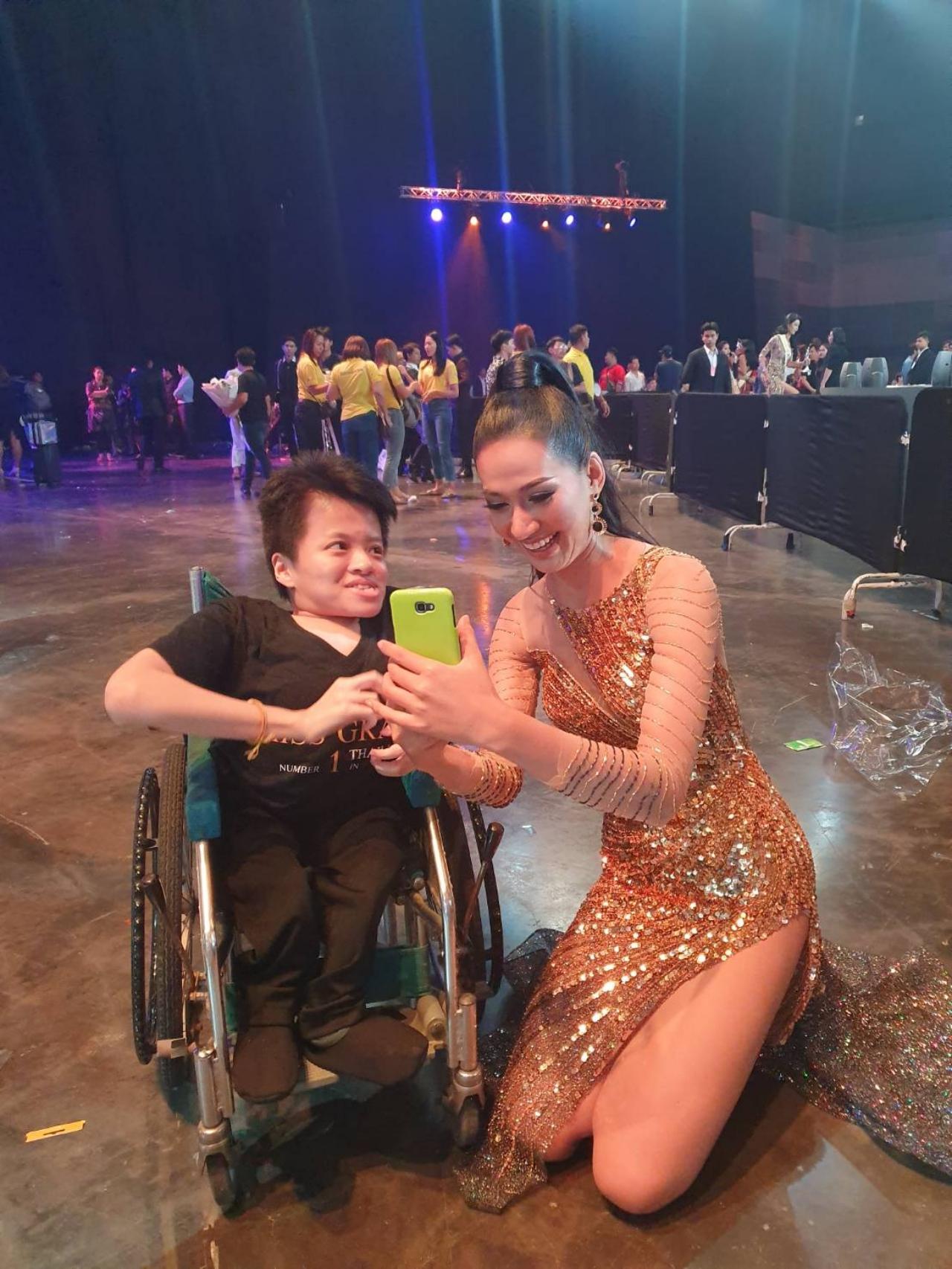 สองนางงามตาไวใจงามจริง เห็นแฟนคลับนางงาม นั่งรถเข็นชะเง้อคอยรออยู่ข้างล่างเวที ทั้งสองสาวเห็นแล้ว ต่างรีบพุ่งเข้ามาหาอย่างไวเว่อร์ เป็นมุมเล็กๆ ที่ยิ่งใหญ่ในหัวใจของแฟนคลับท่านนี้ ไม่ต้องพูดเยอะนะ เห็นแค่ภาพน่ารักๆ ของเจน-แตงกี้ ต้องบอกดังๆ เลยว่า นี่แหละนางงามตัวจริง ต้องดูที่การกระทำเป็นหลัก ส่วนเรือนร่างภายนอกสวยแตกต่างกันไป ตามแต่จะชอบ.