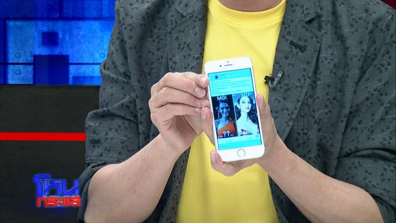 เรื่องก็น่าจะจบ แต่ไม่จบไง มันคุกรุ่นมาจากแฟนนางงามไทยที่เป็นสาวกเวทีมิสยูนิเวิร์สไทยแลนด์ ก็เลยมีการจัดกระแสประเด็นให้ ว่านิสัยไม่ดี สันดานไม่ดี มีคำหยาบคาบเยอะมาที่โกโก้ มาที่กอง อันนี้เป็นสิ่งที่เรายังพอทนไหว แต่ว่ามันมีเหตุการณ์หนึ่งประมาณเที่ยงๆ ท่านนี้ก็โทรมาหาน้อง แต่ก็ไม่ผิดนะ โทรมาได้"