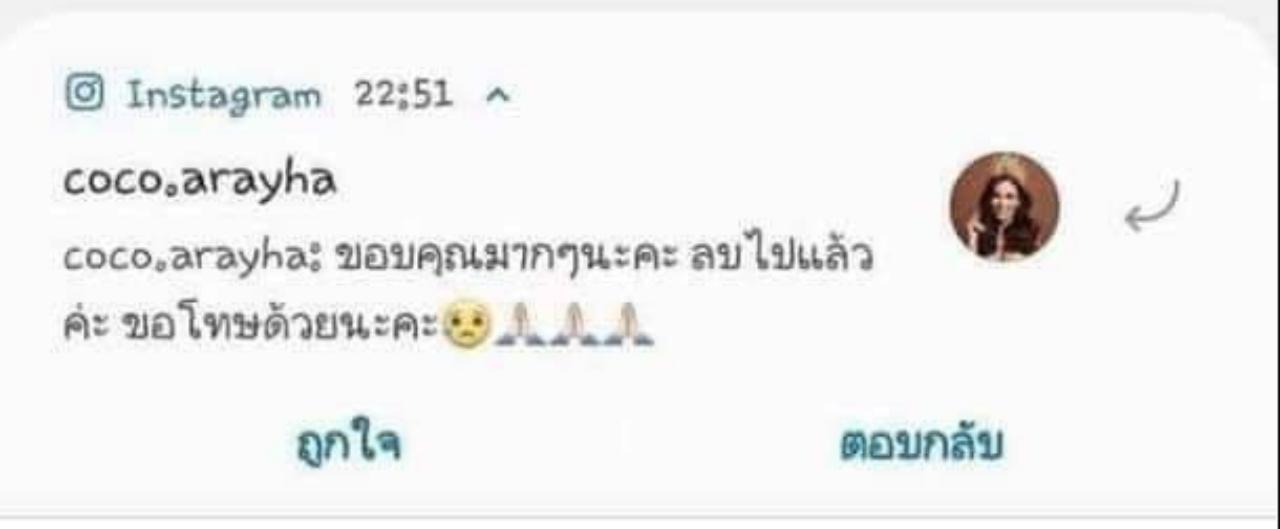 ย้อนเวลาไปช่วงที่เกิดเรื่องใหม่ๆ ก็มีคนหวังดีตักเตือนมา โกโก้ก็รู้ตัวว่าไม่เหมาะสม จึงรีบลบรูปนั้นไปแล้ว และโพสต์ขอโทษผ่านไอจีไปนานแล้วด้วย "ขอบคุณมากๆ นะคะ ลบไปแล้วค่ะ ขอโทษด้วยนะคะ" จนถึงตอนนี้ ยังมีบางคนสติแตก ด่าแหกไม่เลิก ทั้งๆ ที่โกโก้ ก็เคยโพสต์ขอโทษไปนานหลายวันแล้ว ตั้งแต่ช่วงเกิดเรื่องขึ้นมาใหม่ๆ แต่ผ่านไปหลายวัน แต่ชาวโซเชียลบางคนยังไม่ยอมจบ!!! ด่าหยาบคายมากแบบไร้สติต่อไป ระวังด้วย!!! เพราะณวัฒน์ อิสรไกรศีล ผู้อำนวยการกองมิสแกรนด์ไทยแลนด์ เคยเอาจริงให้ตำรวจล่ามาประจานไปแล้ว (คลิกอ่าน >>> ด่าต้องโดน! บทเรียนครั้งใหญ่ ของนักเลงคีย์บอร์ด)