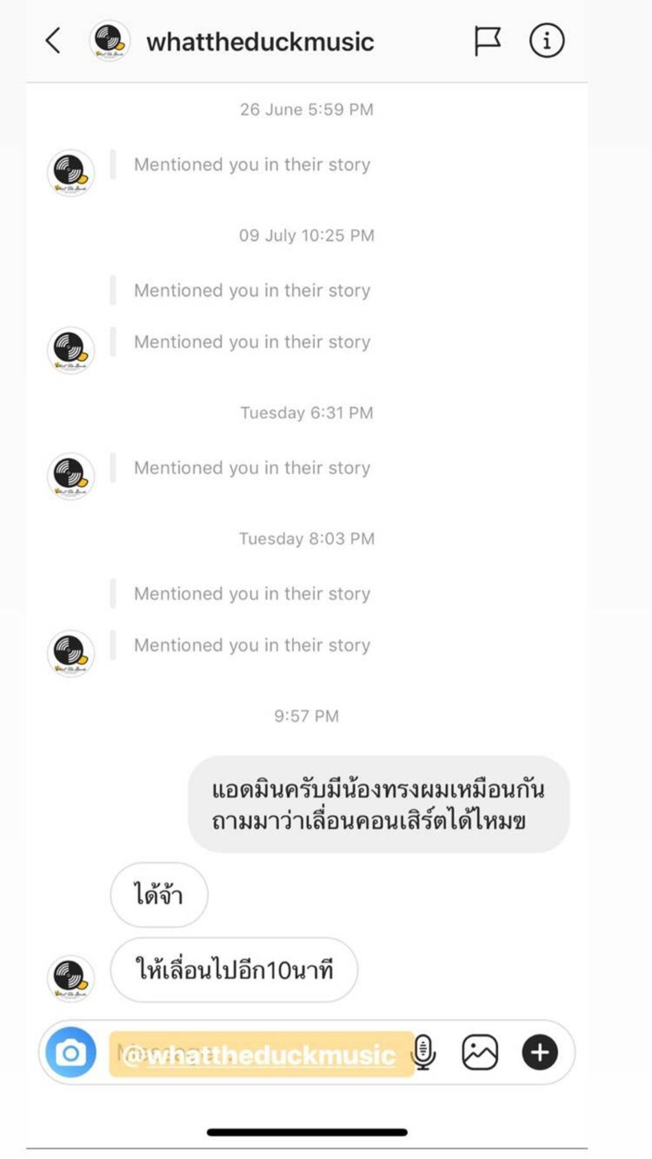 แต่ไอจีสตอรี่ของเดอะทอยส์อันต่อมาฮายิ่งกว่า เมื่อเจ้าตัวได้ส่งข้อความส่วนตัวไปถามไอจีค่ายเพลง @whattheduckmusic ว่า “แอดมินครับ มีน้องทรงผมเหมือนกันถามมาว่าเลื่อนคอนเสิร์ตได้ไหม” แต่เจอคำตอบสุดพีคจากแอดมินว่า “ได้จ้า ให้เลื่อนไปอีก 10 นาที”