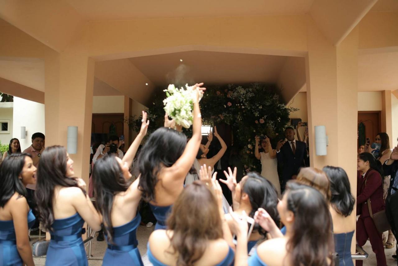 โดยมีครอบครัว ญาติพี่น้องและเพื่อนสนิทของทั้งสองฝ่าย รวมไปถึงเพื่อนเจ้าสาวสวยปังระดับมงลงที่เหินฟ้ามาร่วมแสดงความยินดีกันเพียบ อาทิ แทมารีน กรีน รองอันดับ 1 มิสยูนิเวิร์ส 2018 จากประเทศแอฟริกาใต้, เฮอ เฮนนี รองอันดับ 4 มิสยูนิเวิร์ส 2018 จากจากประเทศเวียดนาม, โซเนีย เฟอร์กินา ซิตร้า 20 คนสุดท้าย มิสยูนิเวิร์ส 2018 จากประเทศอินโดนีเซีย และ ชิว เหม่ยซู Miss Universe China 2018 จากประเทศจีน ซึ่งในงานนี้สาว แทมารีน กรีน รูมเมทคนสนิทของสาวนิ้งเมื่อครั้งตอนประกวดมิสยูนิเวิร์ส 2018 จากประเทศแอฟริกาใต้ ก็เป็นผู้ได้รับช่อดอกไม้จากคู่บ่าวสาวไปครอง