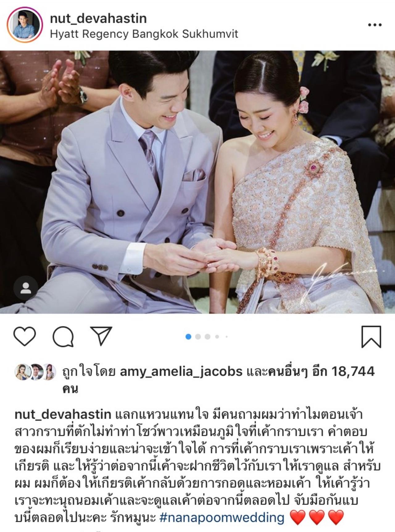 ผ่านพ้นงานแต่งงานไปอย่างเรียบร้อยแล้ว สำหรับเจ้าบ่าวป้ายแดง ณัฏฐ์ เทพหัสดิน ณ อยุธยา กับ นาน่า ธัญยา โดยฝ่ายเจ้าบ่าวได้โพสต์รูปงานแต่งลงอินสตาแกรมรัวๆ ให้กับคนที่โสดและไม่โสดได้รู้สึกมีความสุขและอมยิ้มตามไปด้วย