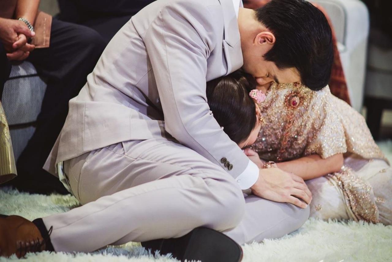 สำหรับผม ผมก็ต้องให้เกียรติเค้ากลับด้วยการกอดและหอมเค้า ให้เค้ารู้ว่าเราจะทะนุถนอมเค้าและจะดูแลเค้าต่อจากนี้ตลอดไป จับมือกันแบบนี้ตลอดไปนะคะ รักหมูนะ”.