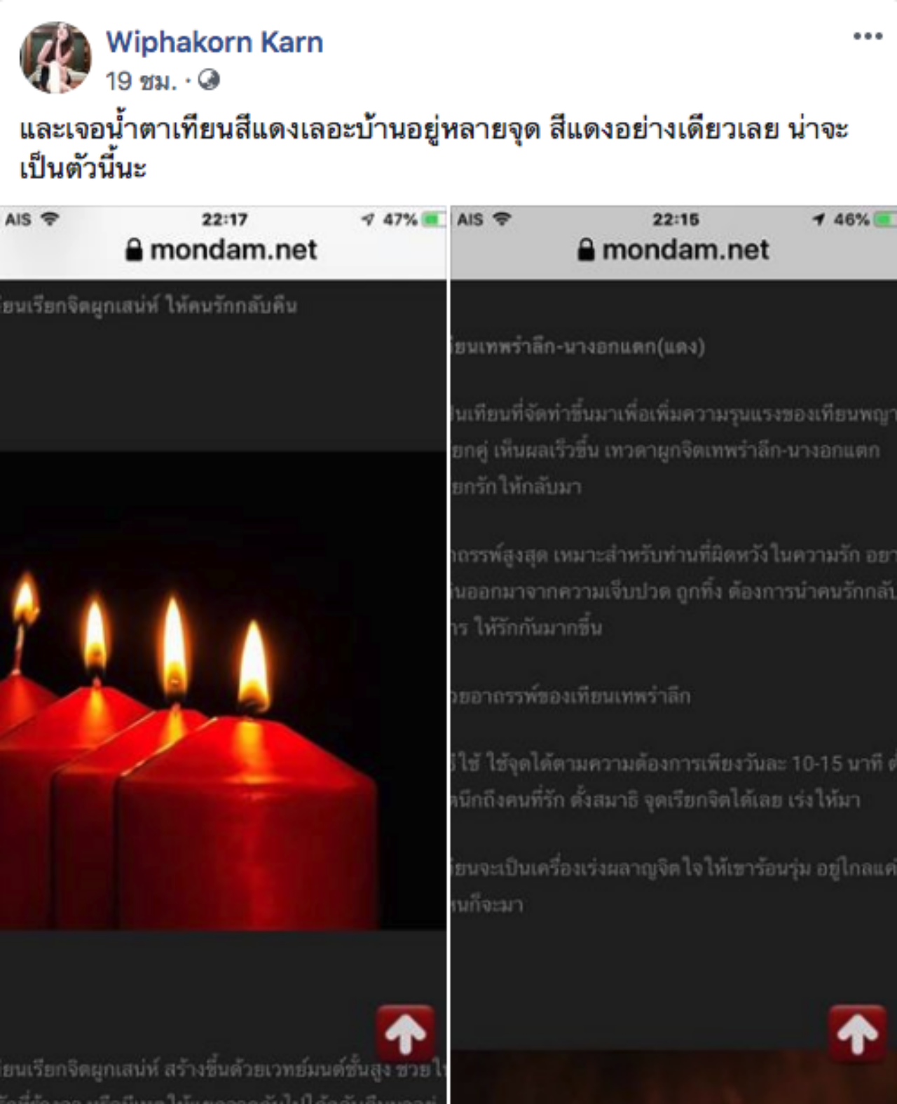 4.เทียนสีแดง เรียกคนรักกลับมา ให้รักให้หลง