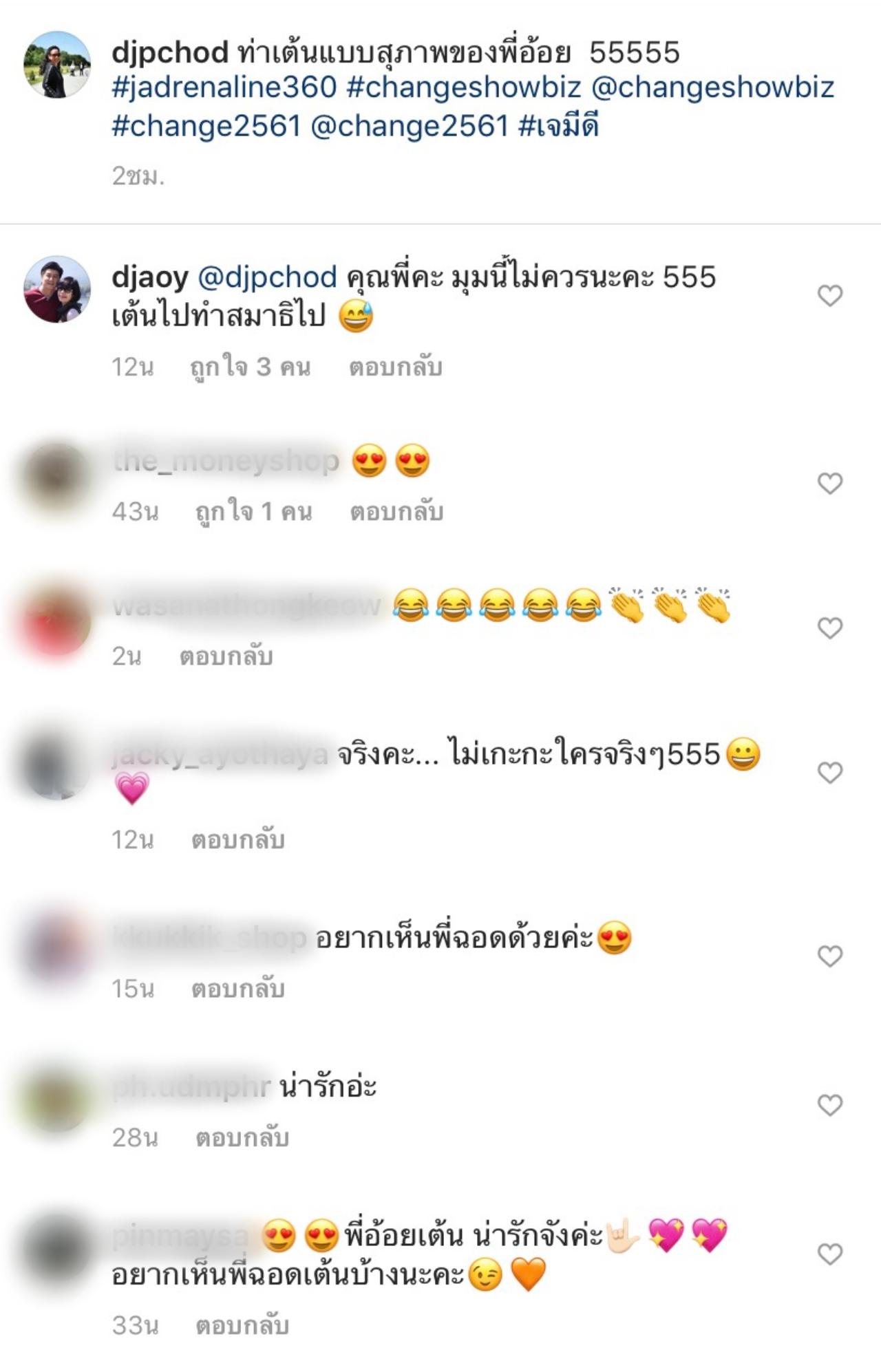 ซึ่งหลังจากที่พี่ฉอดลงคลิปเต้นของพี่อ้อยไป เจ้าตัวก็ได้เข้ามาคอมเมนต์ว่า “พี่คะ มุมนี้ไม่ควรนะคะ 555 เต้นไปทำสมาธิไป” และงานนี้ก็มีชาวเน็ตเข้ามาคอมเมนต์ว่าบอกว่า พี่อ้อยเต้นน่ารัก และอยากเห็นพี่ฉอดเต้นบ้าง กันมากมาย