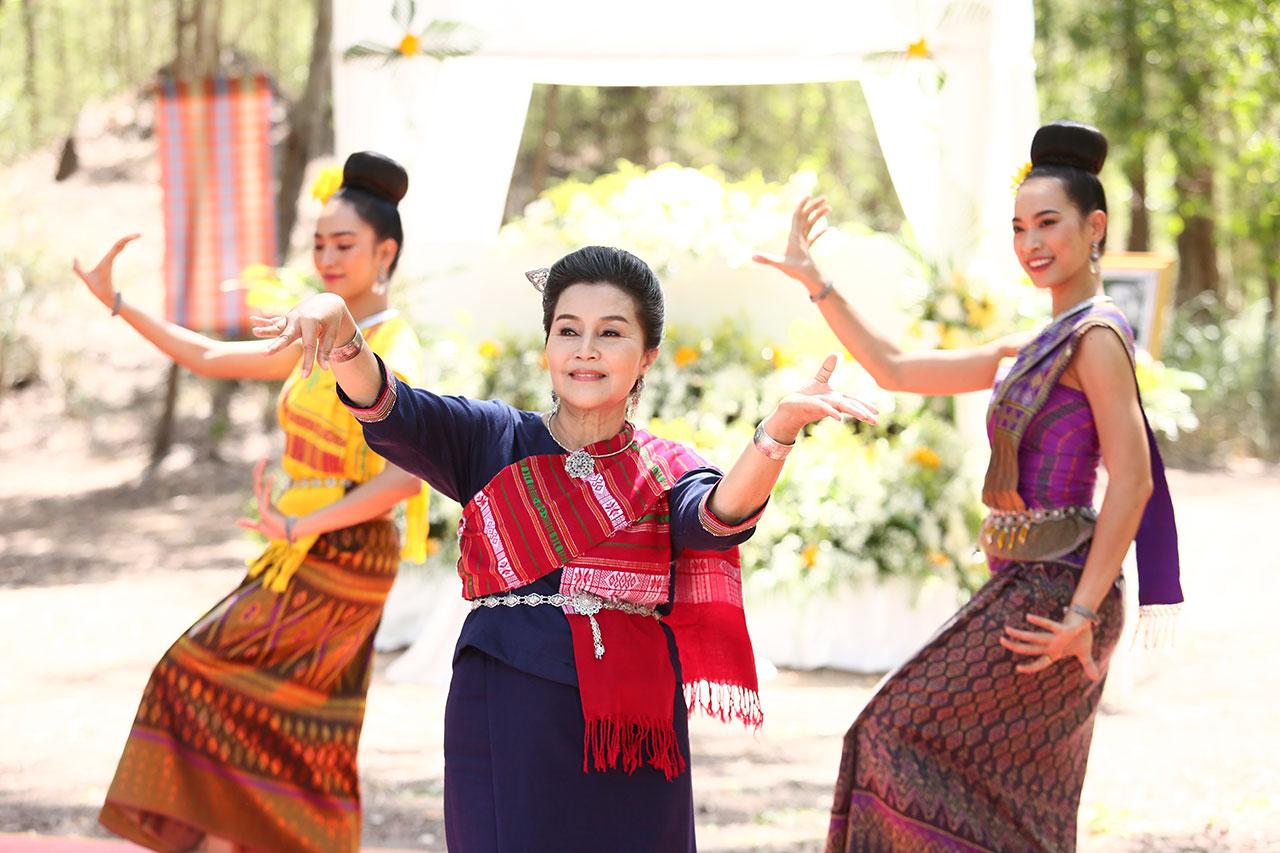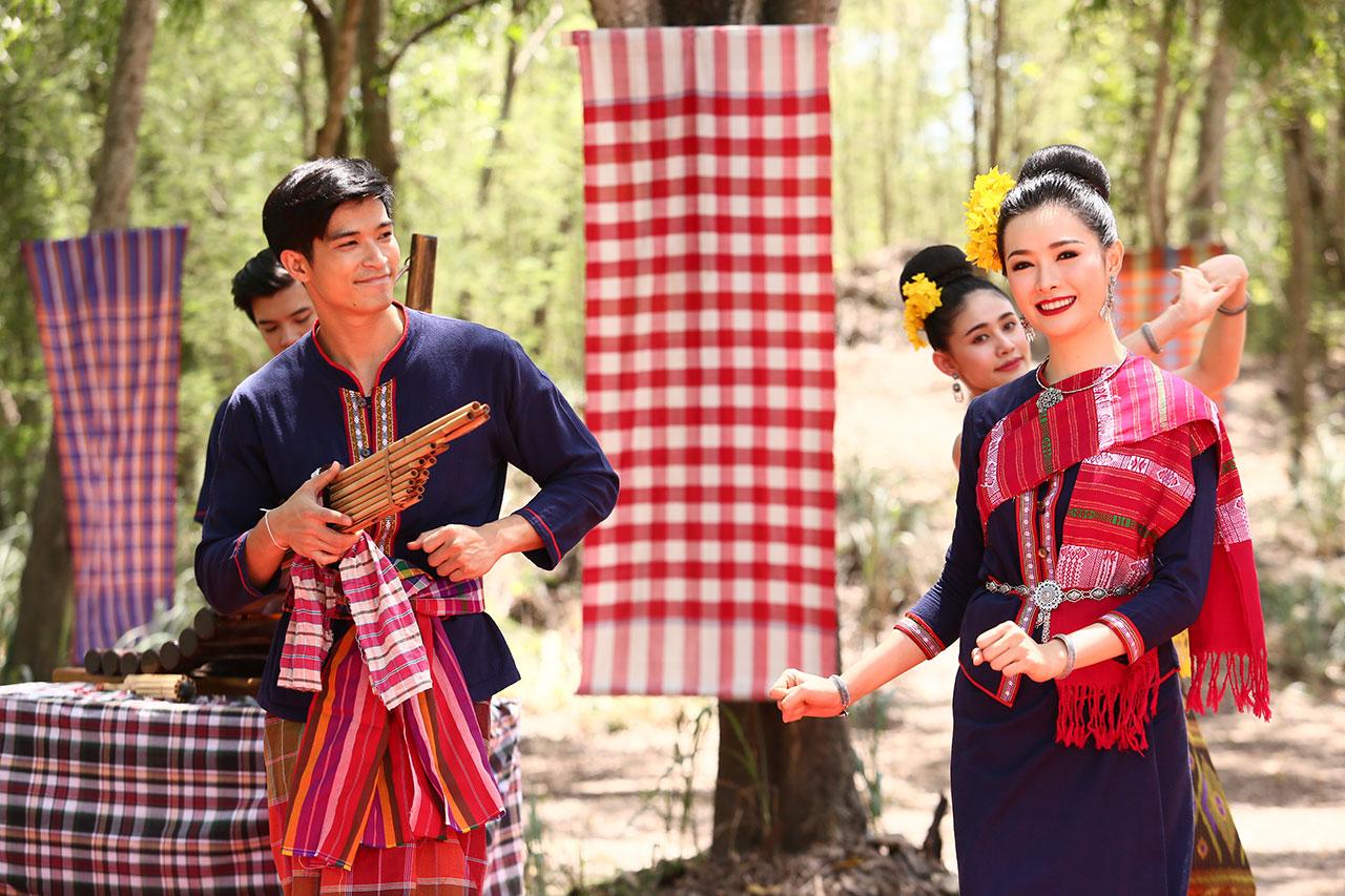 ด้านเต๋า ก็ดีดพิณประสานเสียง บรรเลงไปพร้อม โปงลางจากแม็คกี้ และกลอง ที่ตีเข้าจังหวะโดย เน็ค ผสมผสานกันอย่างลงตัวเป็นจังหวะสนุกสนานให้สาวๆ ฟ้อน รำ กันตามเพลงและท่วงทำนองของดนตรีหมอลำ ซึ่งทุกคนก็รำกันอย่างเต็มที่ด้วยใบหน้าที่ยิ้มแย้ม ให้ผู้กำกับเก็บภาพบรรยากาศและความอ่อนช้อยสวยงามในแต่ละมุมจนได้ภาพสมใจ ก็สั่งคัต เรียกว่ากว่าจะได้ภาพสวยงามก็ต้องถ่ายกันหลายมุมแต่นักแสดงก็ไม่มีบ่น รำ ร้อง ฟ้อน บรรเลงดนตรีกันกี่รอบก็โปรยยิ้มสดชื่นแจ่มใส ถ่ายทอดความเป็นศิลปินได้อย่างมืออาชีพสุดๆ ซึ่งฉากนี้ก็ถือว่าเป็นอีกฉากที่สร้างความทรงจำที่ประทับใจให้กับนักแสดงและทีมงานอีกฉากหนึ่งกันเลยทีเดียว