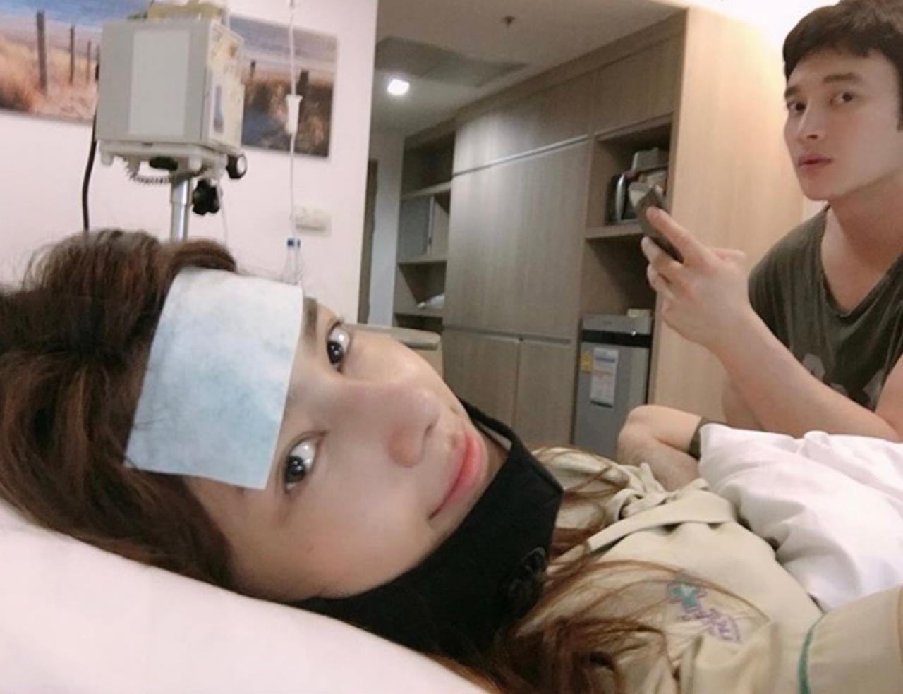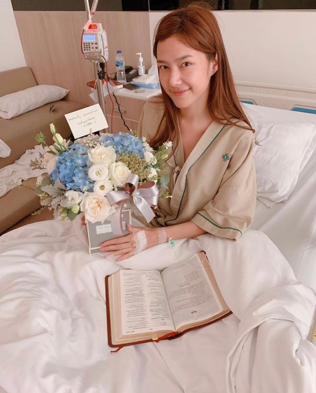 ก็ไปถ่ายละคร ทำงานปกติ จนตกดึกกลับมานอนบ้านไข้ขึ้นสูงมาก เริ่มหนาวสั่น เลยทนไม่ไหวไปหาหมอ คือเลือดออกอยู่ในท้องมา 3 วันไม่รู้เรื่องเลย จนเสียเลือดเยอะ ค่าเลือดลดลงเรื่อยๆ หมอบอกว่าถ้าอีก 2 ชม. ค่าเลือดยังลดต้องผ่าตัดทันที เลยอธิษฐานขอไม่อยากผ่าตัดเลย ลุ้นมาก