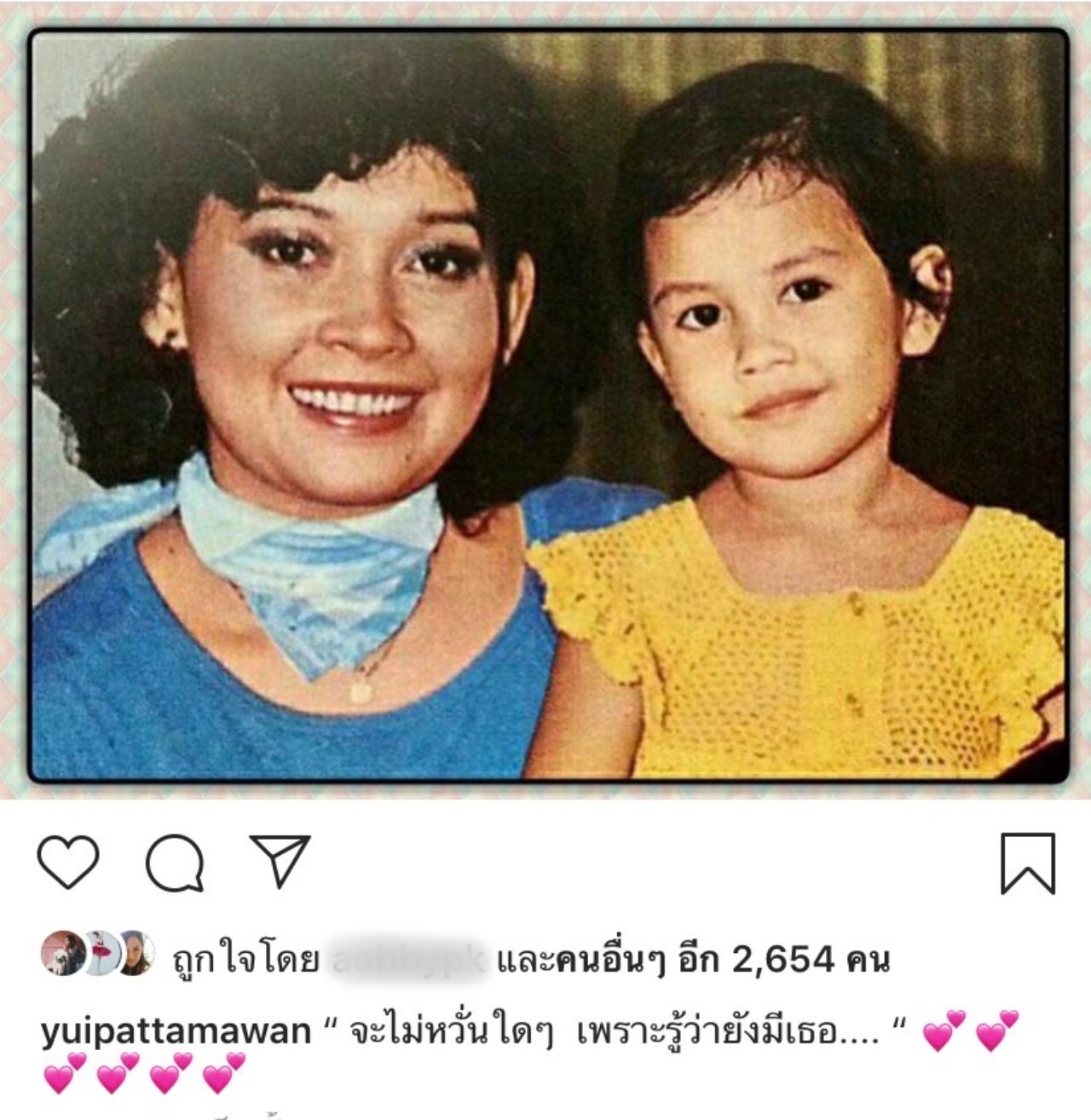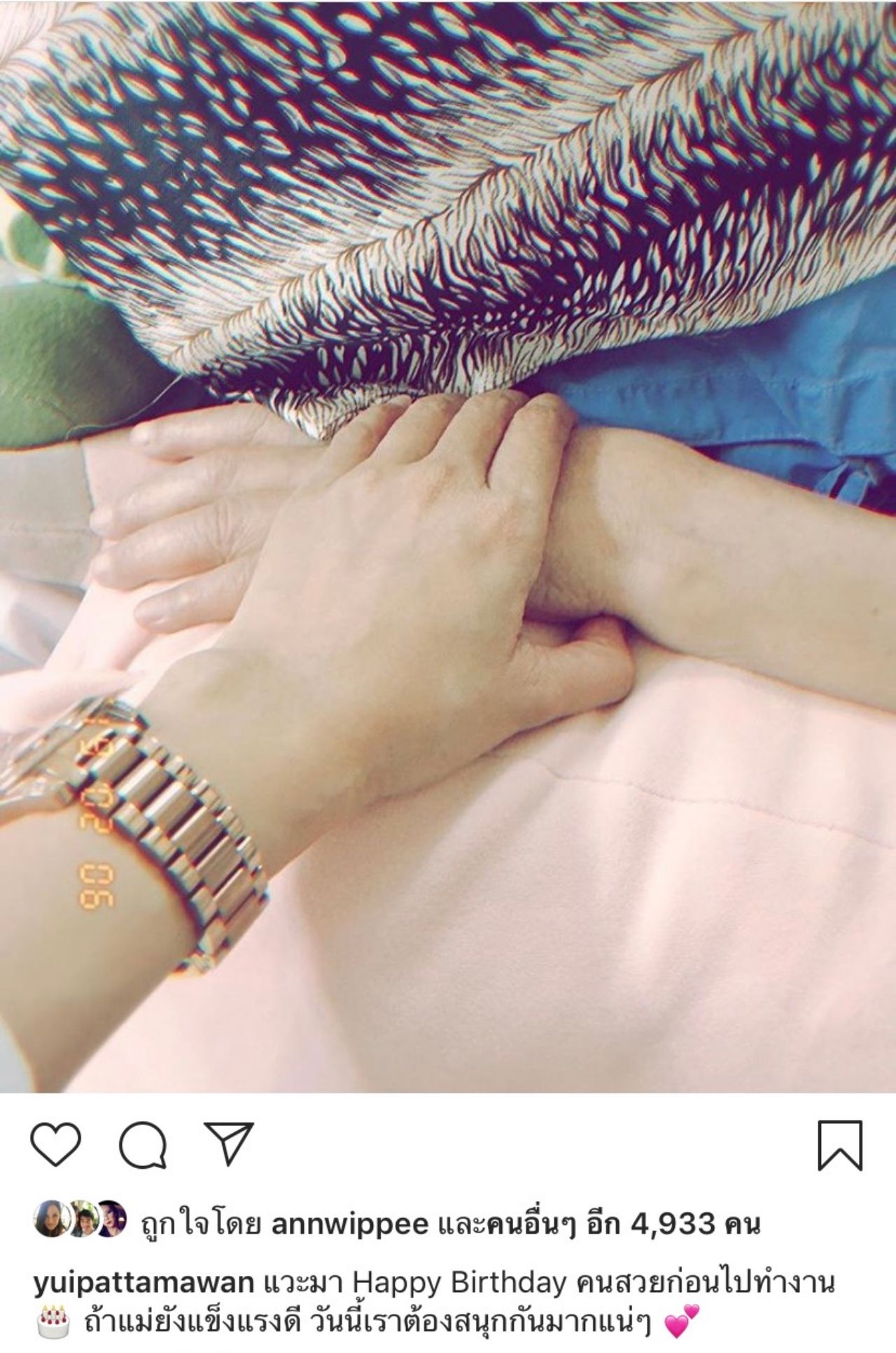 อยากจะบอกว่าขอบคุณทุกคนมากๆ ที่ส่งมาทุกทาง หรือเวลาไปเจอและไม่เคยรู้จักมาก่อน แต่เดินเข้ามาบอกว่าขอให้คุณแม่ดีขึ้นนะคะ คือมันดีมากจริงๆ ทุกกำลังใจมันสร้างแรงให้เราได้มาก คนรักคนเป็นห่วงคุณแม่ขนาดนี้ มันทำให้เราฮึดต่อ อยากให้คุณแม่รับรู้ว่ามีคนส่งกำลังใจมาให้ พวกเราขอบคุณมากๆ เลยนะคะ