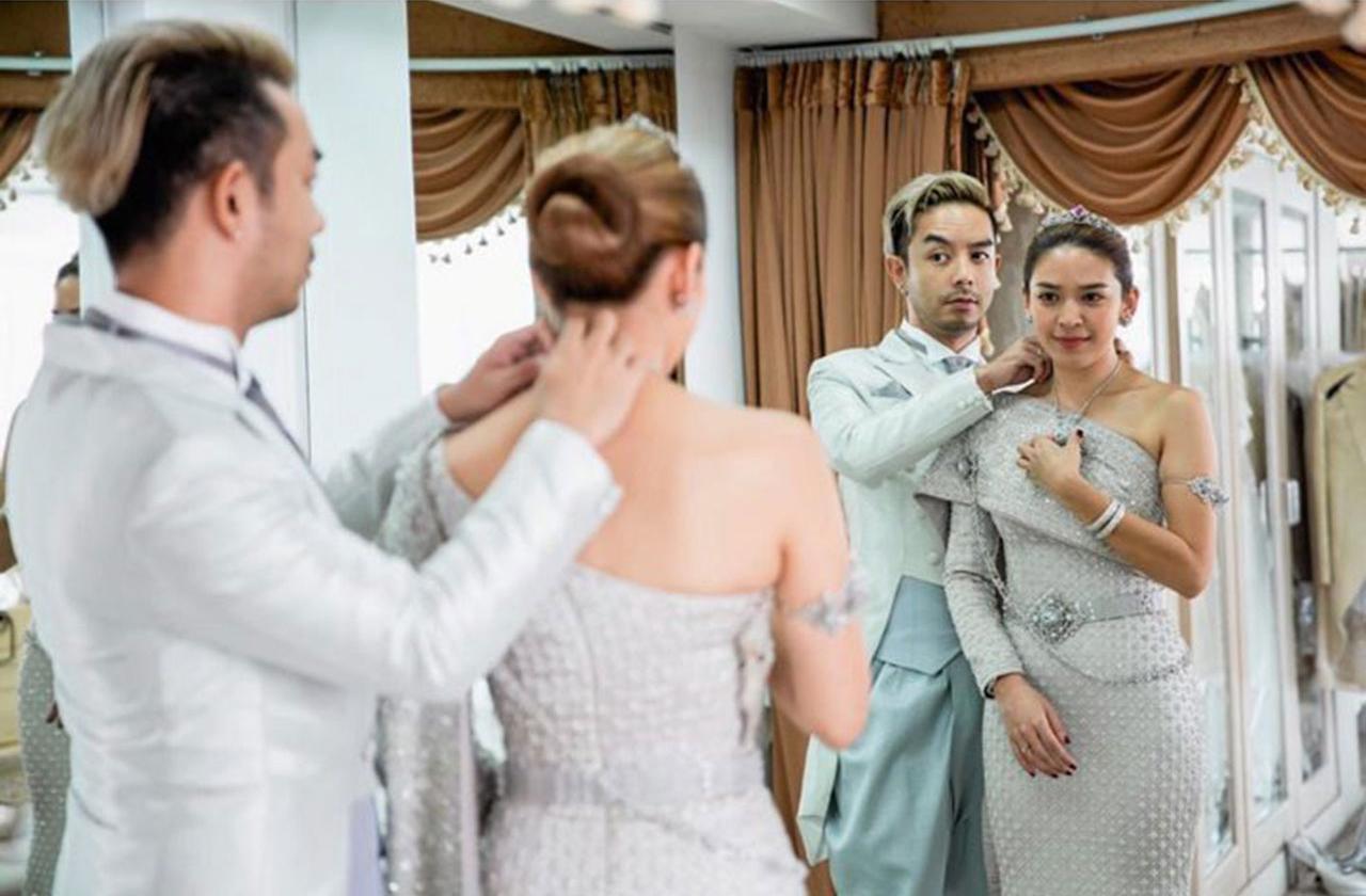 “เรื่องธีมเป็นพี่กวางคิด เค้ายังไม่ไฟนอล สรุปออกมา ทุกอย่างดำเนินการไม่ค่อยได้ เป็นศิลปินก็ต้องคิดนานนิดนึง ส่วนหวานจะดูเรื่องชุด พรีเวดดิ้ง การ์ด ส่วนพี่กวางคิดธีม เรื่องชุดหวานก็ได้ของ พี่ปลา ฟินาเล่ ดูแลทั้งคู่ อย่างที่เห็นเราไปลองชุดกัน อันนั้นไม่ใช่ชุดจริง ให้รู้ฟีลแบบนี้ สิ้น ก.ย. พี่ปลาจะเริ่มทำชุดให้หวานแล้ว จะมีถ่ายพรีเวดดิ้งกันต่อไป ทั้งหมดก็จะ 5 ชุด ชุดเช้า ชุดไทย ชุดหมั้น ชุดแถลงข่าว มีหลายอย่างที่เป็นรายละเอียด”