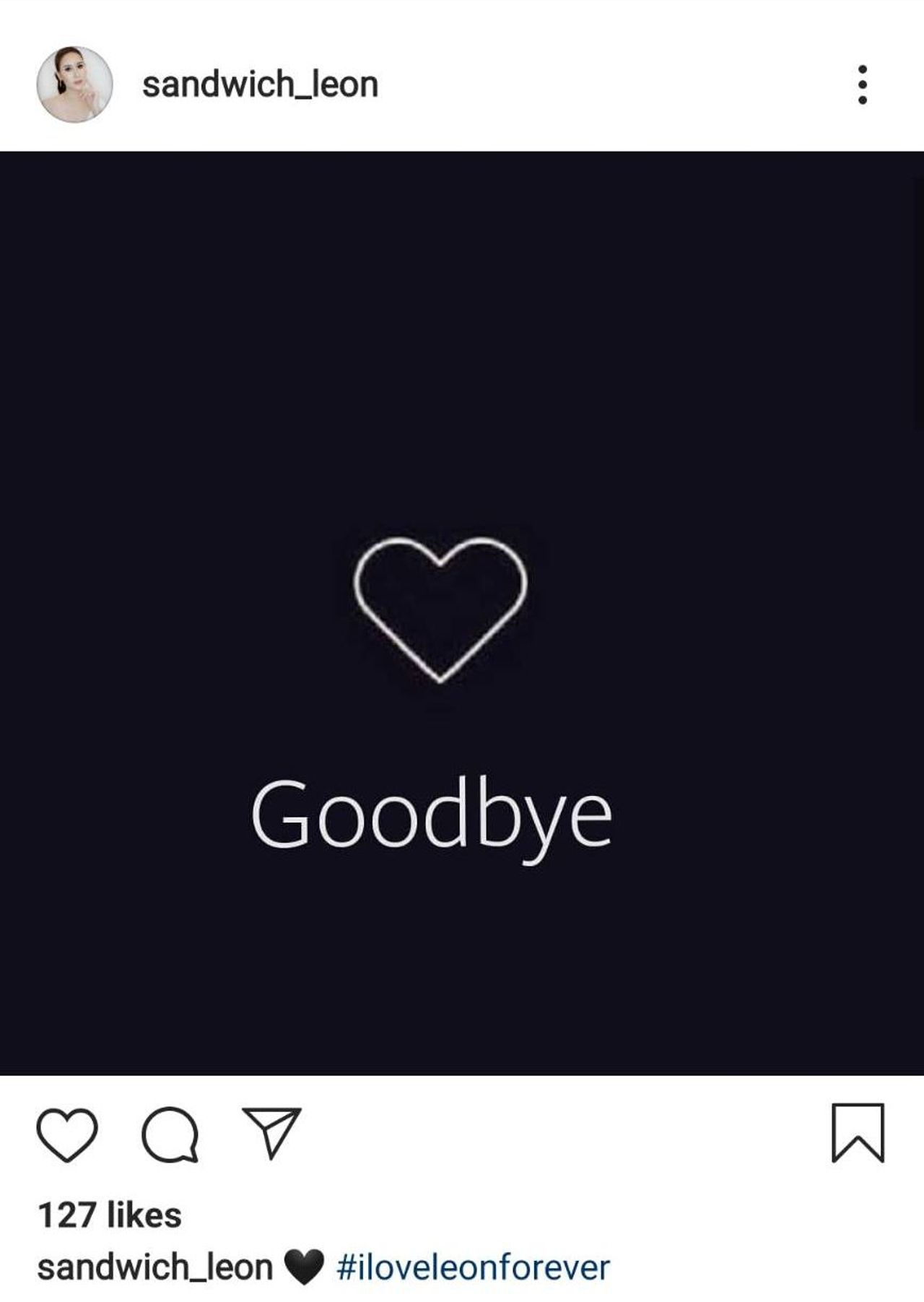 ทำเอาชาวเน็ตหลายคนสงสัยว่านักแสดงสาว แซนวิช ปภาดา โชติกวณิชย์ อดีตภรรยาของร็อกเกอร์ดัง เสก โลโซ เป็นอะไรกันแน่ เมื่อเจ้าตัวโพสต์ภาพหัวใจสีดำและมีข้อความในภาพว่า “Goodbye” และเขียนแคปชั่นเป็นไอคอนรูปหัวใจสีดำ และติดแฮชแท็ก “#iloveleonforever”