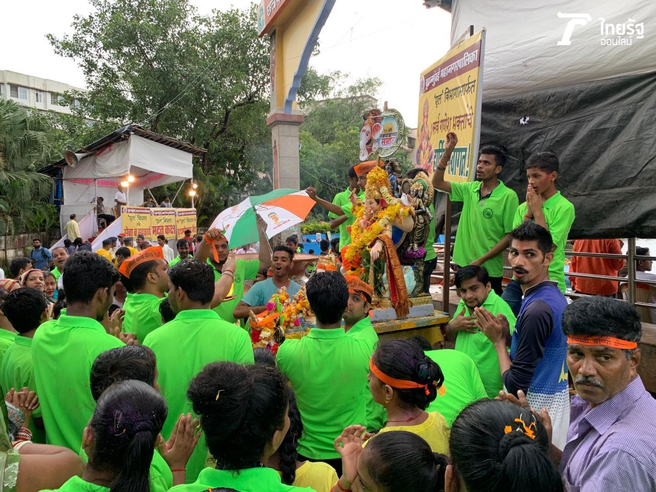 รูปปั้นพระพิฆเนศแต่ละองค์ ต่างได้รับการตกแต่งอย่างงดงามชวนตะลึง มีทั้งขนาดเล็กไปถึงถึงขนาดใหญ่โตสูงมาก ที่ต้องใช้หลายคนมาแบกหาม แต่จะกลุ่มต่างจัดขบวนแห่ร้องเต้นรำอย่างคักคึกมากๆ เต็มท้องถนนทั่วเมืองไปหมด พิธีนำพระพิฆเนศไปลอยทะเล จะเริ่มตั้งแต่เช้าๆ ไปจนถึงมืดค่ำเลย ยาวไปๆ คลื่นมหาชนมหาศาล ต่างหลั่งไหลมากันเยอะมากขึ้นๆ โดยเฉพาะช่วยดึกดื่น