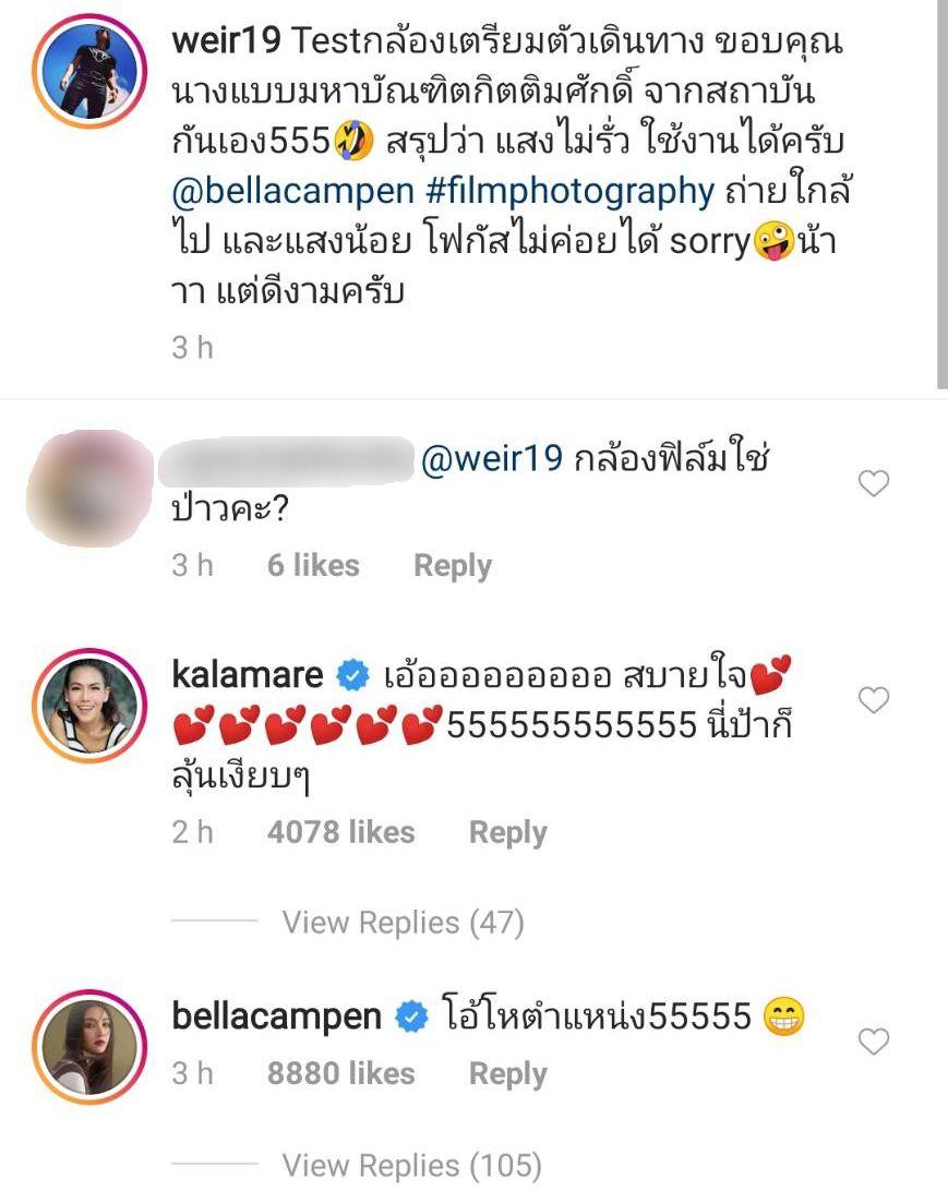 ล่าสุด เวียร์-เบลล่า มีโมเมนต์หวานๆ ให้แฟนๆ ได้ฟินกันอีกแล้ว เมื่อเวียร์โพสต์ภาพเบลล่าจากกล้องฟิล์มลงไอจีส่วนตัว พร้อมทั้งเขียนแคปชั่นว่า “Test กล้องเตรียมตัวเดินทาง ขอบคุณนางแบบมหาบัณฑิตกิตติมศักดิ์ จากสถาบันกันเอง 555 สรุปว่า แสงไม่รั่ว ใช้งานได้ครับ @bellacampen #filmphotography ถ่ายใกล้ไป และแสงน้อย โฟกัสไม่ค่อยได้ sorry น้าาา แต่ดีงามครับ”