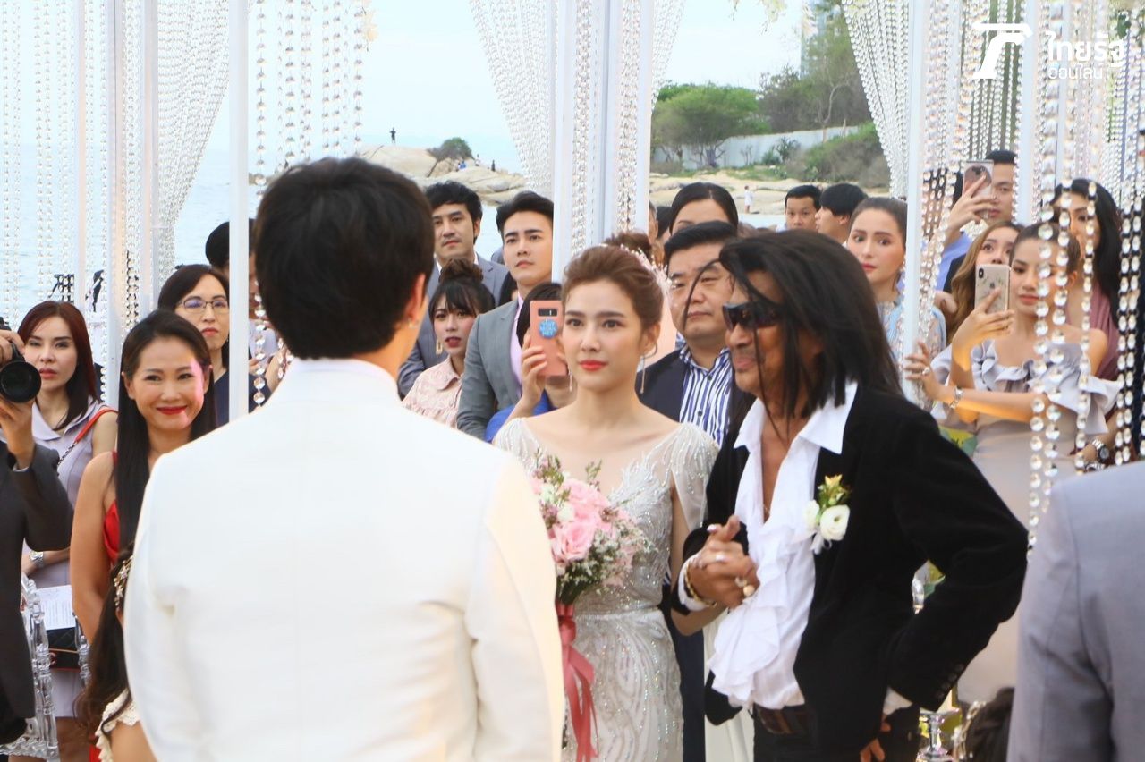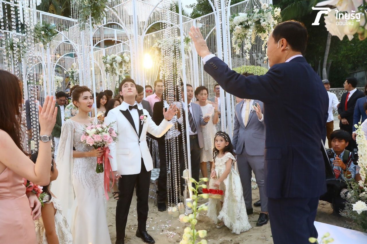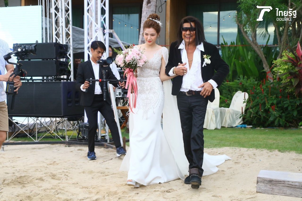 โดยพิธีนั้นเริ่มจาก พ่อแหลม มอริสัน ได้จูงมือลูกสาวลงมายังริมชายหาด ซึ่งมี เป๊ก เจ้าบ่าวยืนรอรับเจ้าสาว จากนั้นทั้งสองได้ร่วมร้องเพลงงานแต่งงานของคริสเตียน และได้มีการให้คำมั่นสัญญาต่อกันและกัน