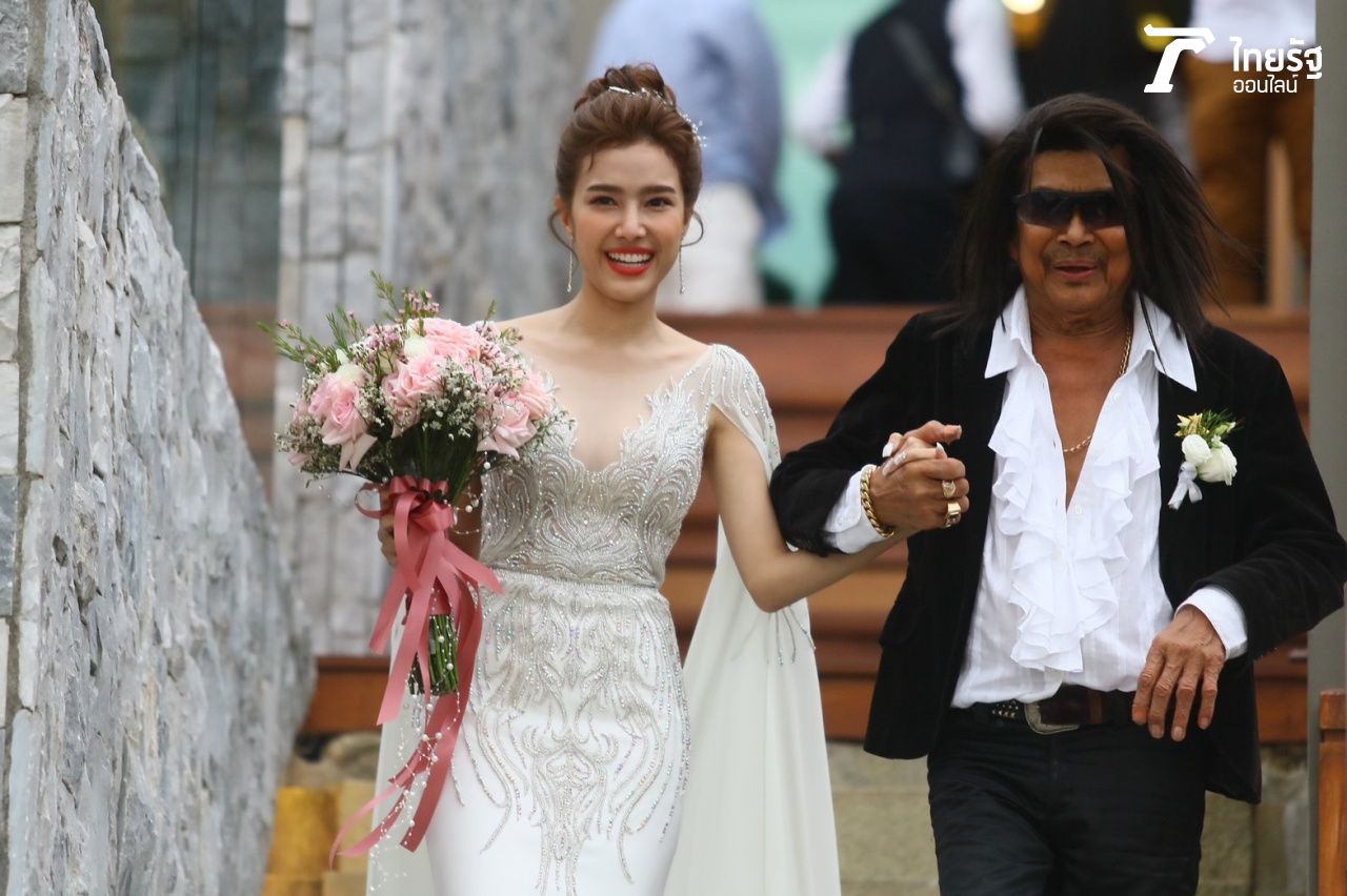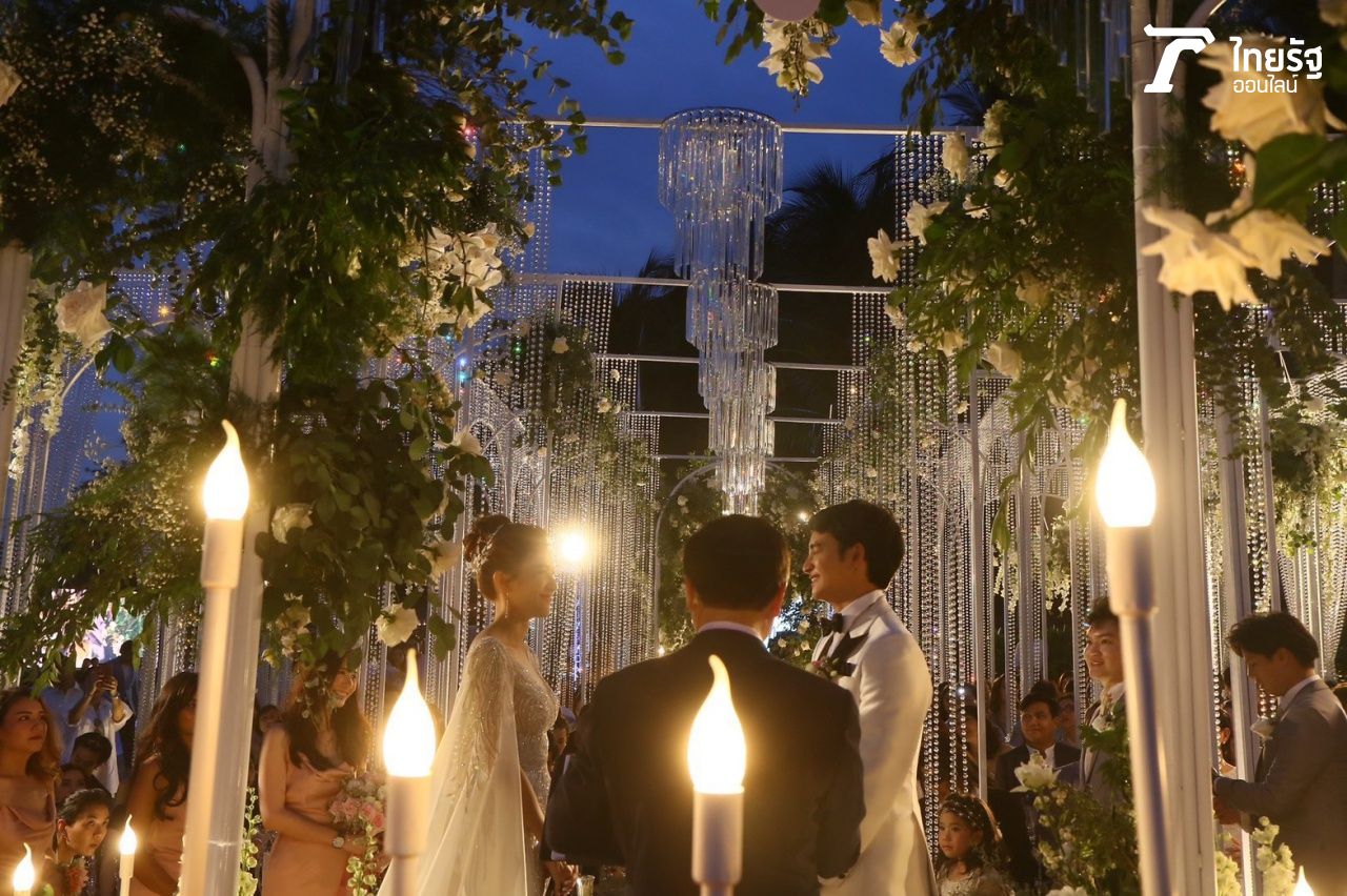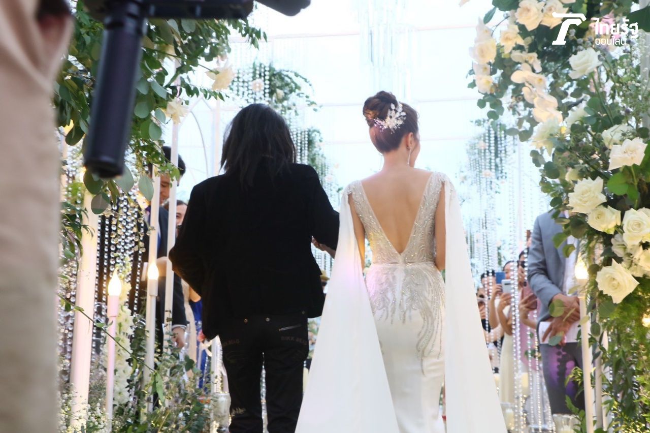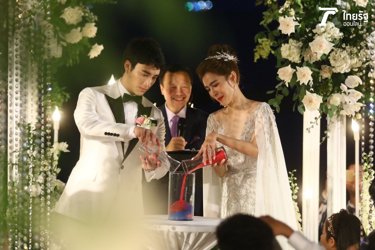 โดยพิธีนั้นเริ่มจาก พ่อแหลม มอริสัน ได้จูงมือลูกสาวลงมายังริมชายหาด ซึ่งมี เป๊ก เจ้าบ่าวยืนรอรับเจ้าสาว จากนั้นทั้งสองได้ร่วมร้องเพลงงานแต่งงานของคริสเตียน และได้มีการให้คำมั่นสัญญาต่อกันและกัน