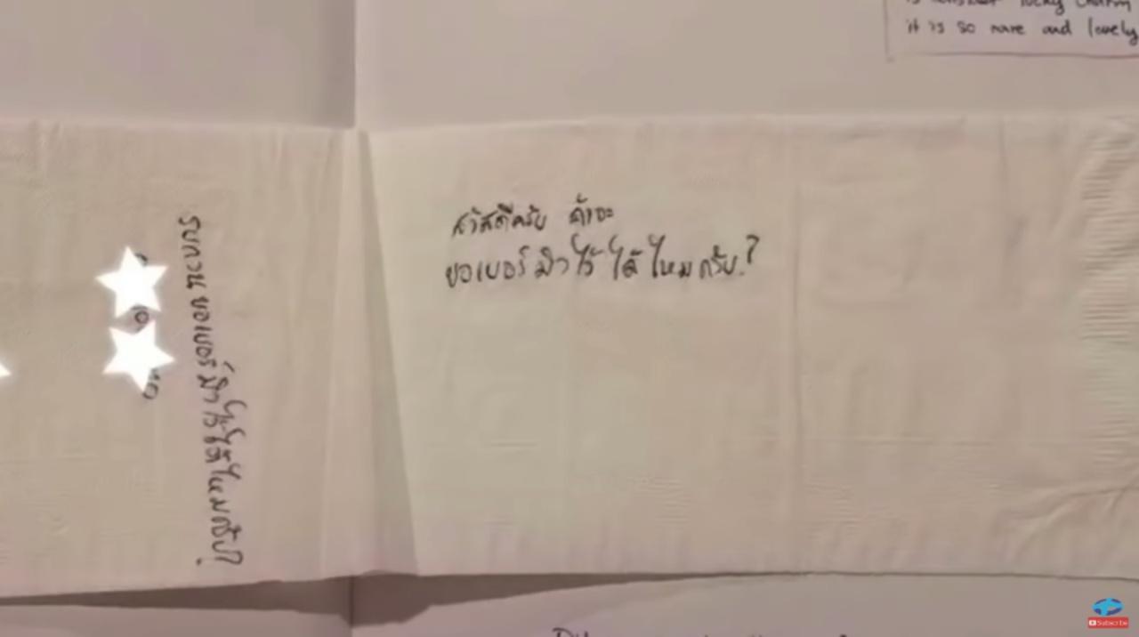 นอกจากนี้ เซนต์ ได้เขียนขอเบอร์ มิว ใส่กระดาษทิชชู ซึ่งในตอนนั้นมีแค่ไลน์ แต่ยังไม่มีเบอร์โทรศัพท์ จึงได้เขียนใส่กระดาษทิชชูเพื่อขอเบอร์ แม้ว่า ณ ตอนนั้นจะนั่งอยู่ข้างกัน แต่อยากมีโมเมนต์นี้ อีกทั้ง เซนต์ ยังได้บีนทึกลงในไดอารี่ในวันที่ มิว มาฟอลโลว์อินสตาแกรมเป็นครั้งแรกอีกด้วย