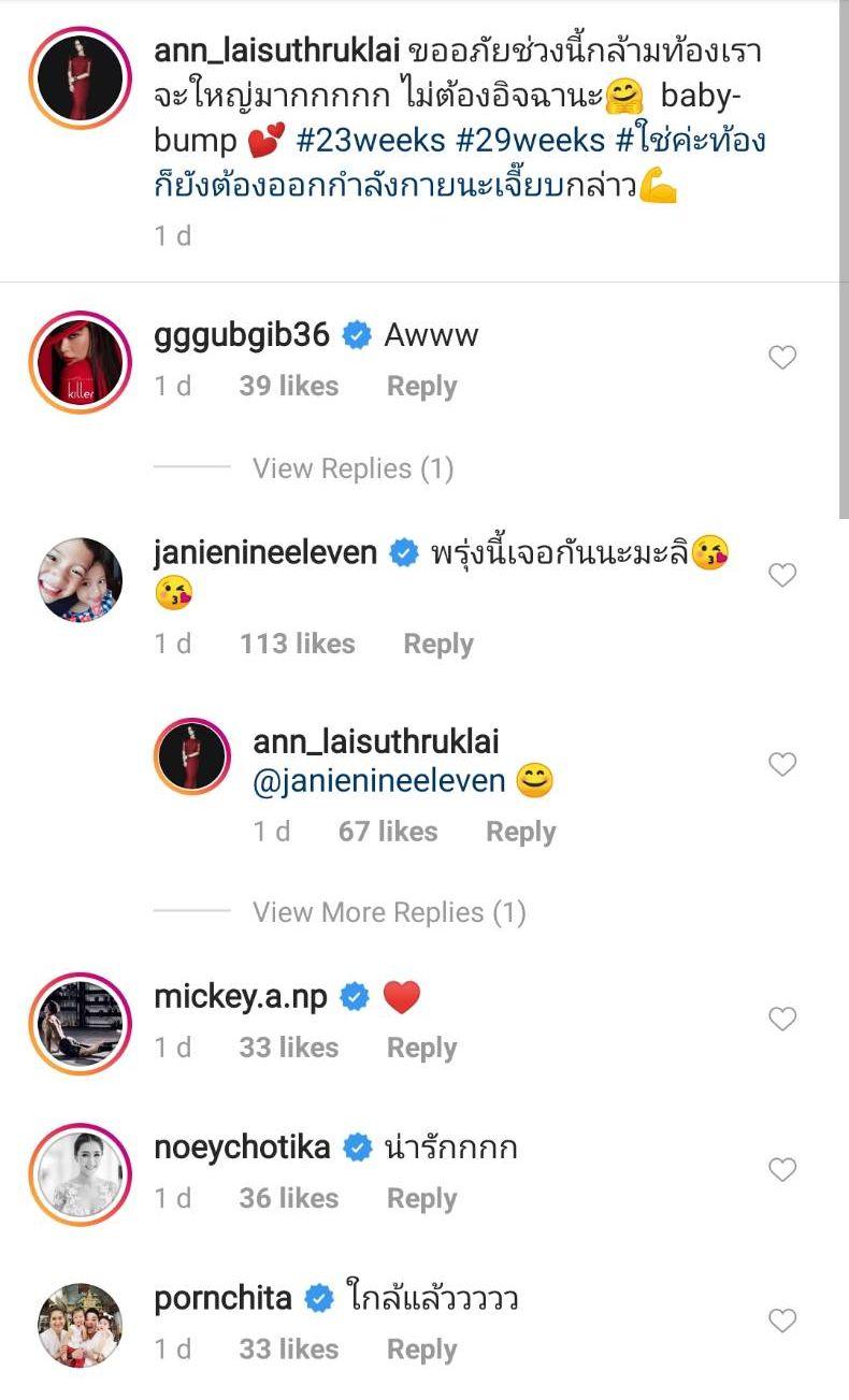 หลังจากนั้นก็มีบรรดาคุณแม่ในวงการบันเทิง อาทิ กุ๊บกิ๊บ สุมณทิพย์, เนย โชติกา, เบนซ์ พรชิตา เข้ามาคอมเมนต์ ส่วน มิกกี้ นนท์ อัลภาชน์ ณ ป้อมเพชร สามีของเจนี่ ก็เข้ามาคอมเมนต์เป็นไอคอนรูปหัวใจ ด้าน เจนี่ ก็คอมเมนต์ใต้ภาพนี้ว่า “พรุ่งนี้เจอกันนะมะลิ” และแอนก็ตอบกลับด้วยอีโมจิรูปยิ้มด้วย.
