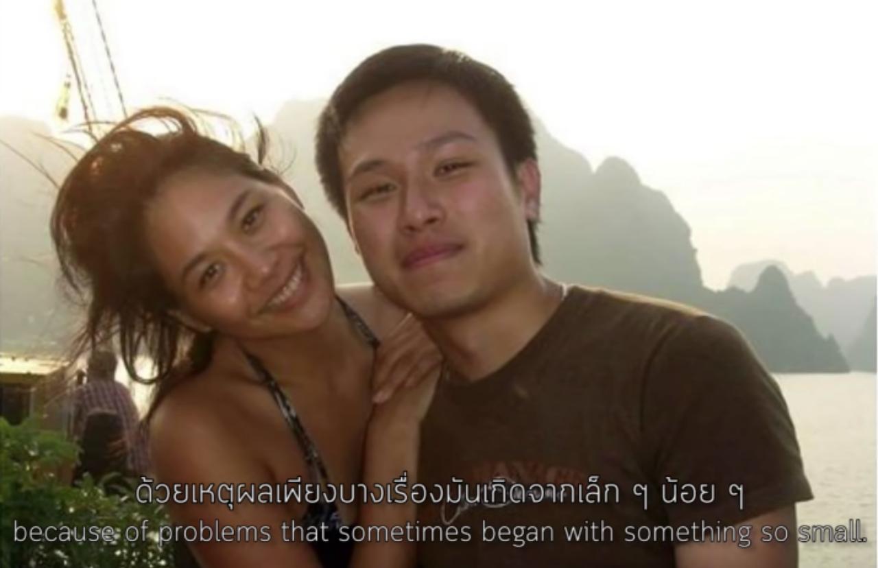 แล้วแม่ก็บอกว่าฆ่าอู๊ดเลย แล้วพ่อก็วิ่งไปบีบคอแม่ เราไม่รู้จะทำไง ก็เลยไปนั่งกับพื้น เราก็ขอให้เค้าหยุด แต่เค้าไม่หยุด เลยเอาหัวโขกพื้น พอพ่อเห็นก็หันมาบอกว่าอย่าทำแบบนี้ นี่ไม่ใช่ลูกพ่อ