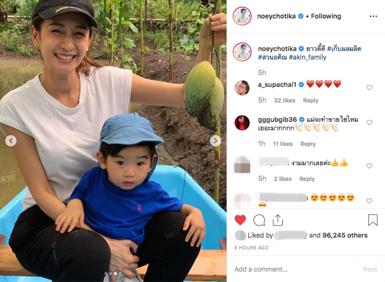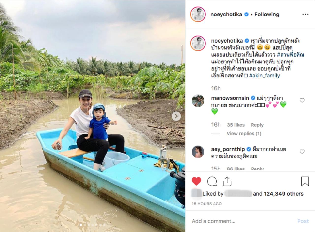 ล่าสุด เนย ได้โพสต์ภาพสวนผักแบบพอเพียงผ่านอินสตาแกรมของตัวเอง โดยบอกว่า สวนผักนี้เริ่มต้นจากการที่ชอบปลูกผักหลังบ้านมาก่อน และผักที่ปลูกในสวนนี้เป็นผักที่ น้องอคิณชอบทั้งนั้น อีกทั้งยังได้ขุดร่องกลางแปลงผักเพื่อเลี้ยงปลาอีกด้วย มาจนถึงวันนี้ผลผลิตทั้งหมดที่สวนของ น้องอคิณ เริ่มเก็บกินได้แล้ว ซึ่งแม่เนยได้โพสต์รูปพร้อมกับเขียนแคปชั่นว่า