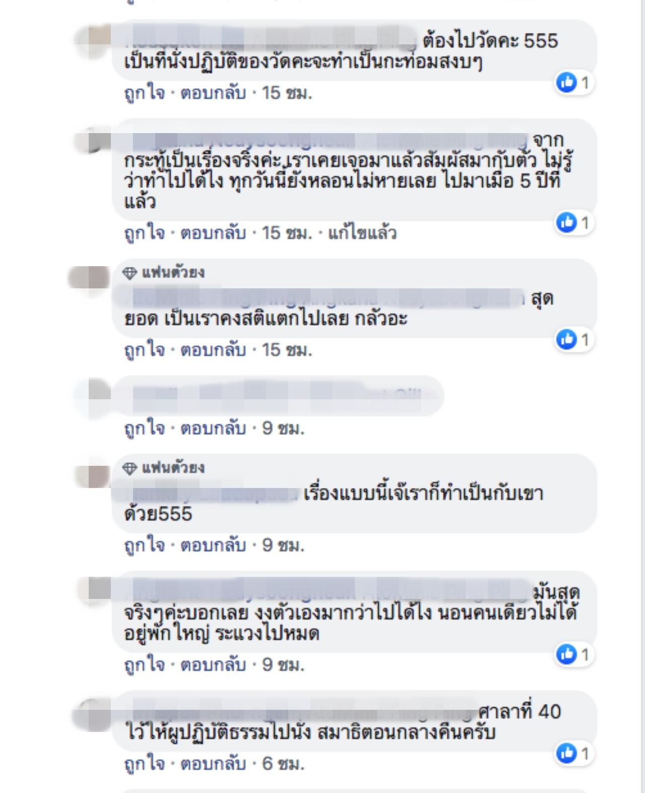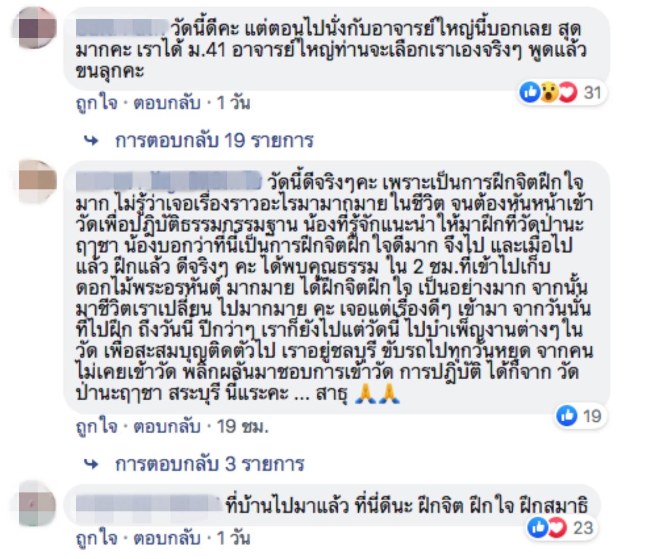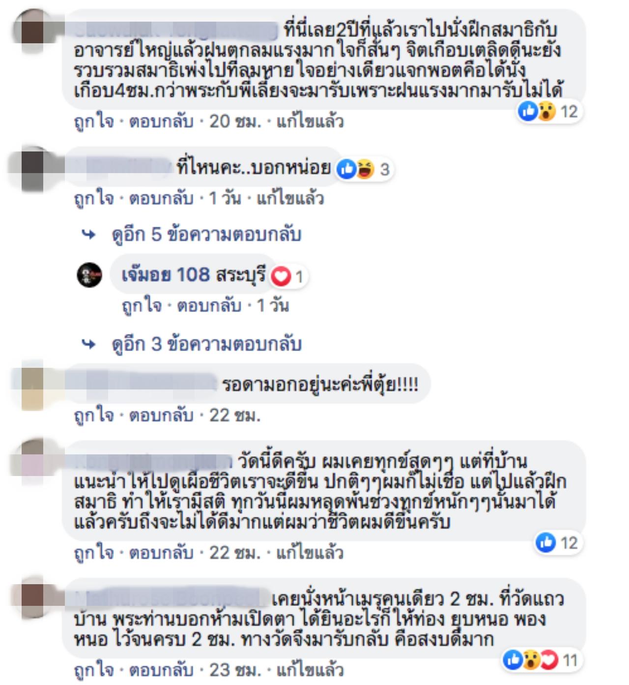 หลังจากที่ เพจ เจ๊มอย 108 ได้โพสต์เรื่องนี้ออกไป หลายคนก็ได้เข้ามาให้กำลังใจ ตุ้ย เป็นจำนวนมาก บางส่วนก็พูดแบบขำๆ ว่า รอดามอกหนุ่มคนนี้อยู่ และบางส่วนก็ได้เข้ามาพูดคุยเกี่ยวกับเรื่องการนั่งสมาธิที่วัดนี้ โดยต่างก็พูดเป็นเสียงเดียวกันว่า วัดนี้ดีมาก ถ้าได้ไปนั่งสมาธิจะเป็นการฝึกจิตที่ดี และบางคนก็ได้บอกว่า ตนเคยไปมาแล้ว เจอผีจนหลอนไปเลยก็มี.